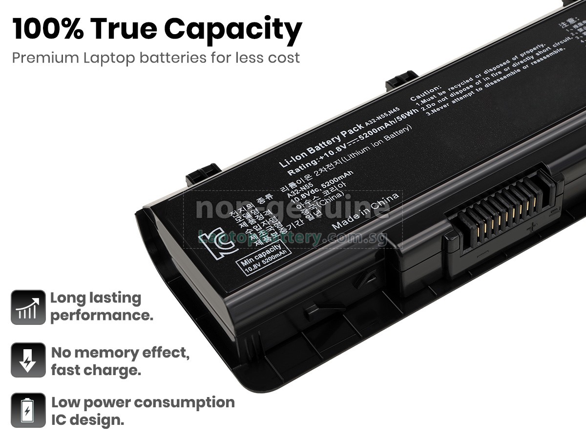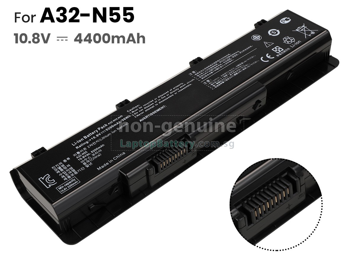 Welcome your patronage and thank you for purchasing this high quality replacement Asus A32-N55 laptop battery at Laptopbattery.com.sg! Before placing an order, please make sure that the part number of your old Asus A32-N55 battery is listed as below and has the same shape as our replacement A32-N55 battery's images (please view the larger images for details).