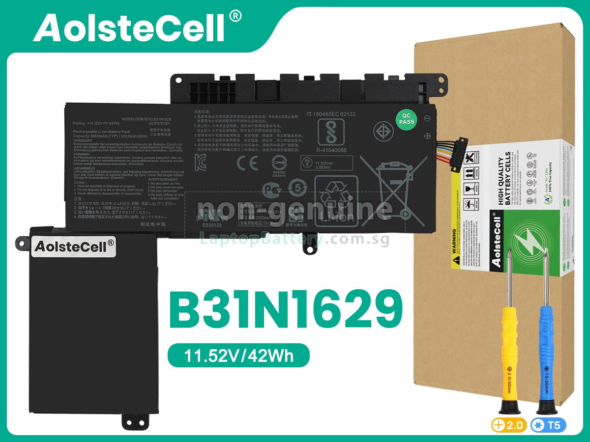 Welcome your patronage and thank you for purchasing this high quality replacement Asus B31N1629 laptop battery at Laptopbattery.com.sg! Before placing an order, please make sure that the part number of your old Asus B31N1629 battery is listed as below and has the same shape as our replacement B31N1629 battery's images (please view the larger images for details).