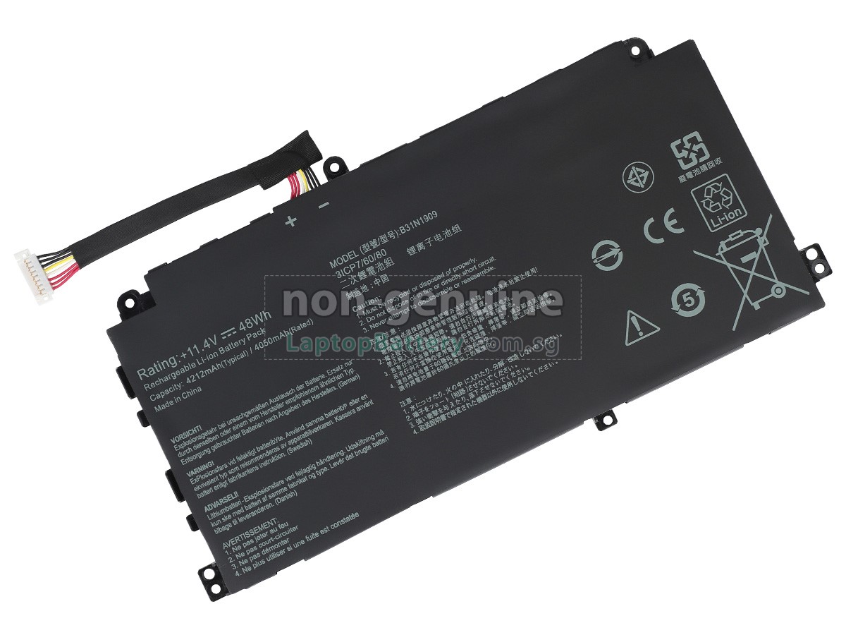 Welcome your patronage and thank you for purchasing this high quality replacement Asus B31N1909 laptop battery at Laptopbattery.com.sg! Before placing an order, please make sure that the part number of your old Asus B31N1909 battery is listed as below and has the same shape as our replacement B31N1909 battery's images (please view the larger images for details).