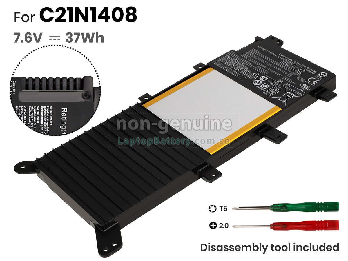 Welcome your patronage and thank you for purchasing this high quality replacement Asus C21N1408 laptop battery at Laptopbattery.com.sg! Before placing an order, please make sure that the part number of your old Asus C21N1408 battery is listed as below and has the same shape as our replacement C21N1408 battery's images (please view the larger images for details).