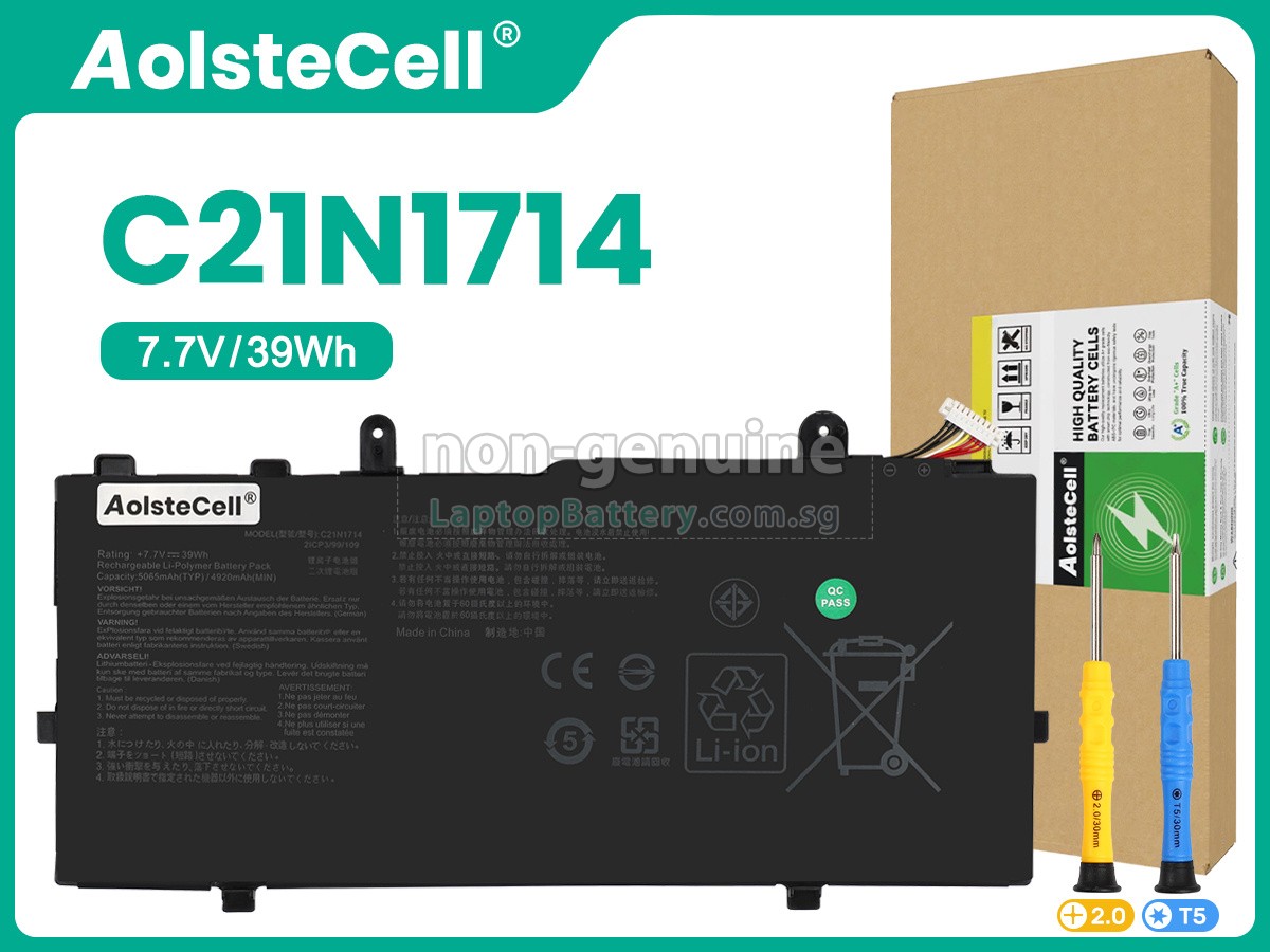 Welcome your patronage and thank you for purchasing this high quality replacement Asus C21N1714 laptop battery at Laptopbattery.com.sg! Before placing an order, please make sure that the part number of your old Asus C21N1714 battery is listed as below and has the same shape as our replacement C21N1714 battery's images (please view the larger images for details).