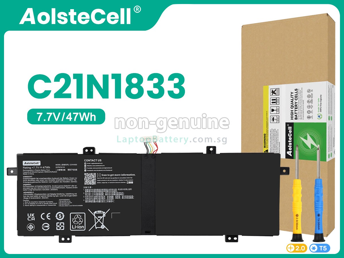 Welcome your patronage and thank you for purchasing this high quality replacement Asus C21N1833 laptop battery at Laptopbattery.com.sg! Before placing an order, please make sure that the part number of your old Asus C21N1833 battery is listed as below and has the same shape as our replacement C21N1833 battery's images (please view the larger images for details).