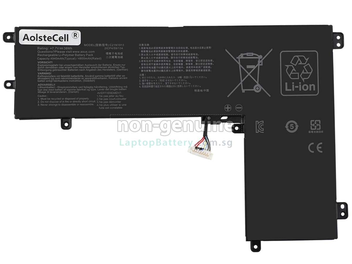 Welcome your patronage and thank you for purchasing this high quality replacement Asus C21N1913 laptop battery at Laptopbattery.com.sg! Before placing an order, please make sure that the part number of your old Asus C21N1913 battery is listed as below and has the same shape as our replacement C21N1913 battery's images (please view the larger images for details).