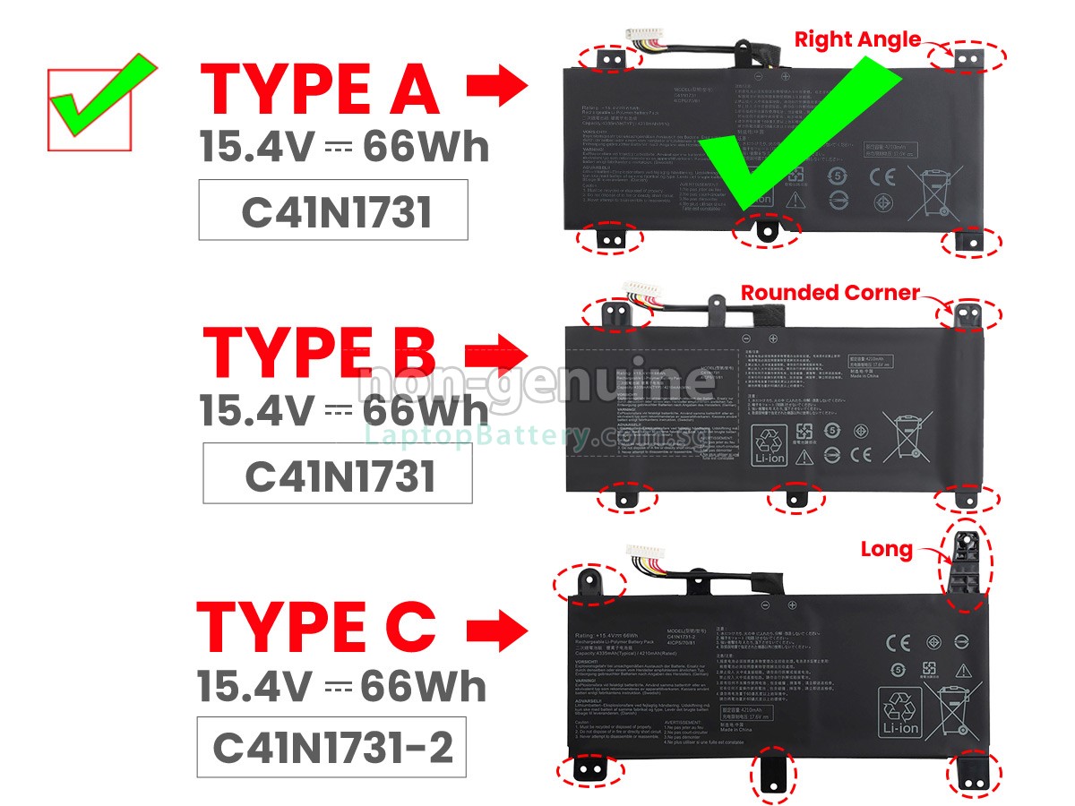 Welcome your patronage and thank you for purchasing this high quality replacement Asus G515GV laptop battery at Laptopbattery.com.sg! Before placing an order, please make sure that the part number of your old Asus G515GV battery is listed as below and has the same shape as our replacement G515GV battery's images (please view the larger images for details).