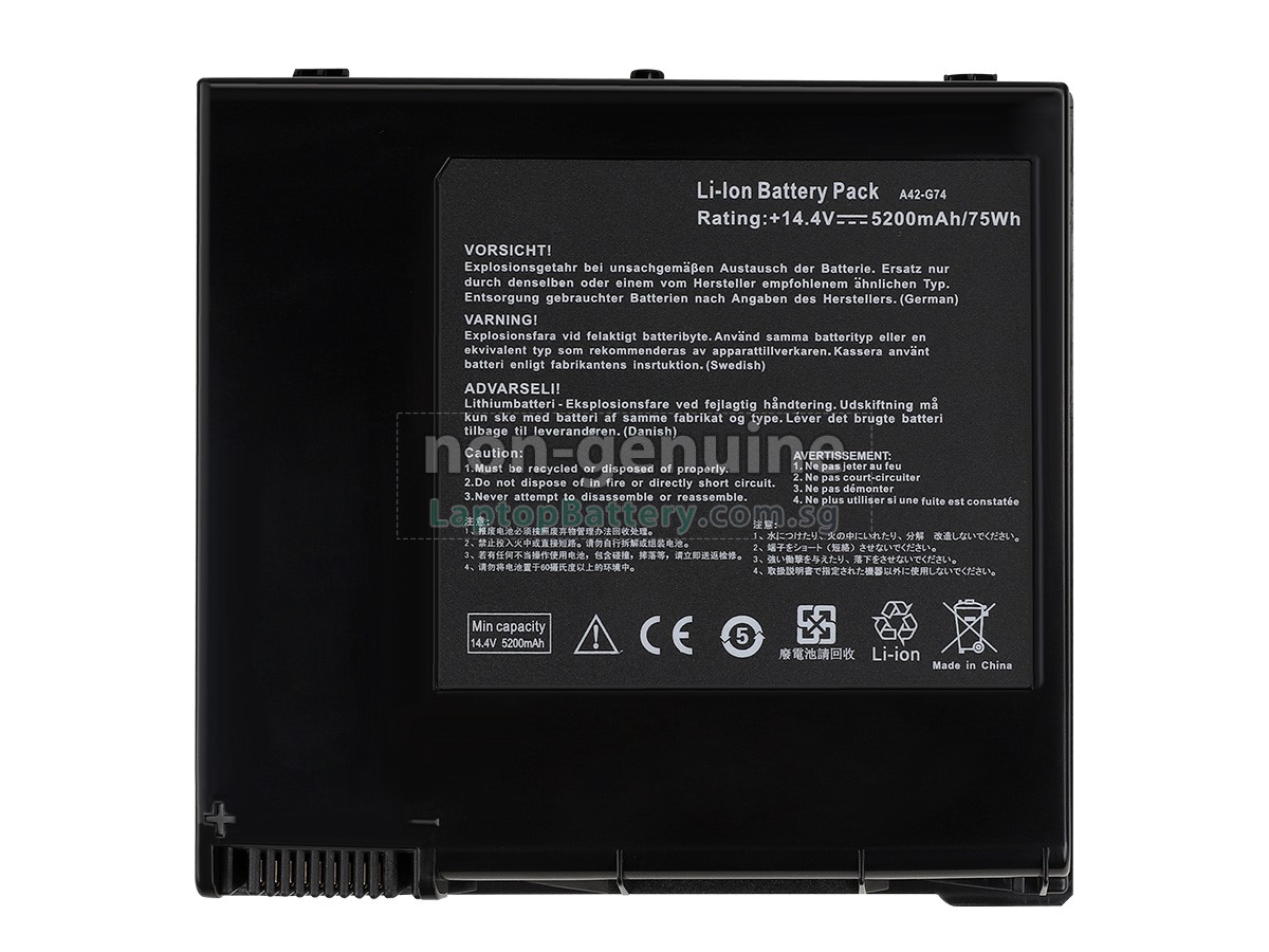All our high quality replacement batteries for Asus G74SX laptop come with a 1-year warranty. Warranty is applicable if the buyer has installed the battery properly in the device and has treated the battery correctly.
