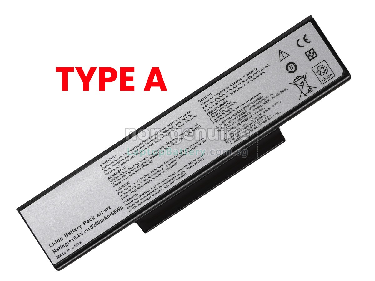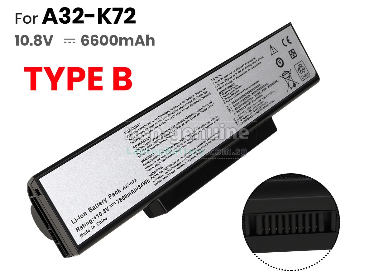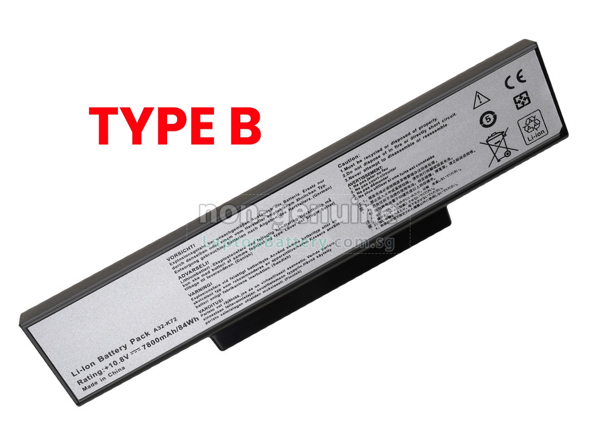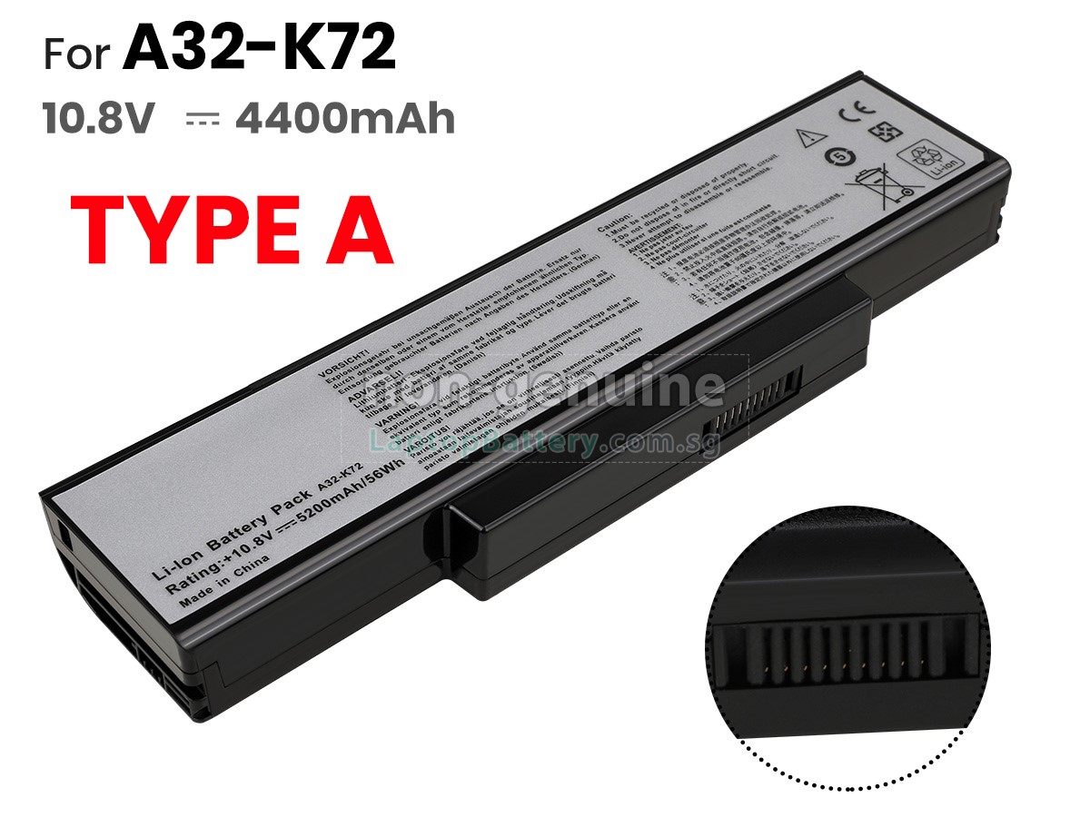 Welcome your patronage and thank you for purchasing this high quality replacement Asus K72F-A1 laptop battery at Laptopbattery.com.sg! Before placing an order, please make sure that the part number of your old Asus K72F-A1 battery is listed as below and has the same shape as our replacement K72F-A1 battery's images (please view the larger images for details).