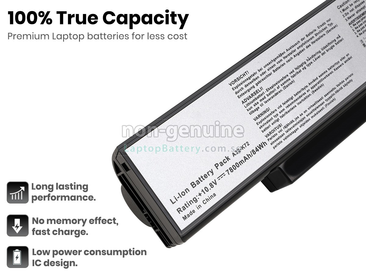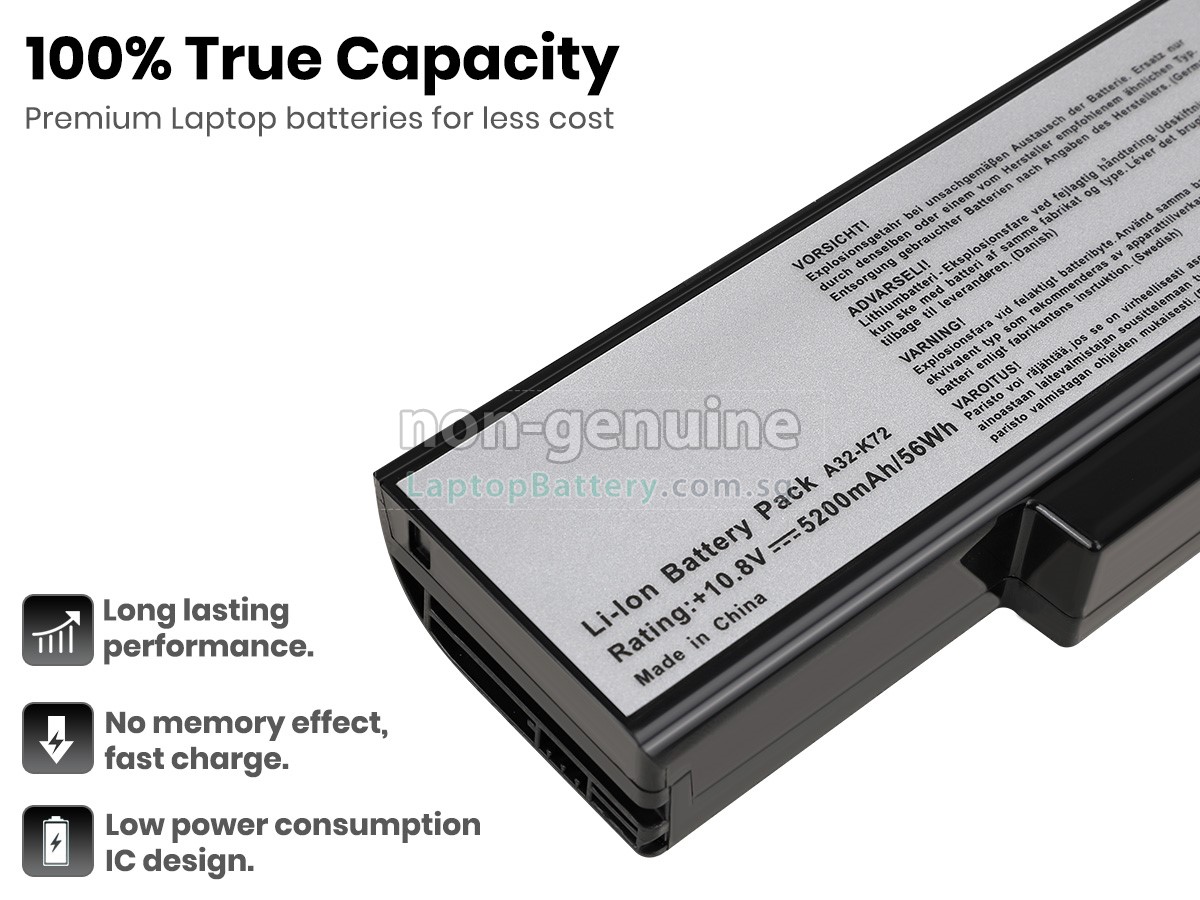 All our high quality replacement batteries for Asus K72F-A1 laptop come with a 1-year warranty. Warranty is applicable if the buyer has installed the battery properly in the device and has treated the battery correctly.
