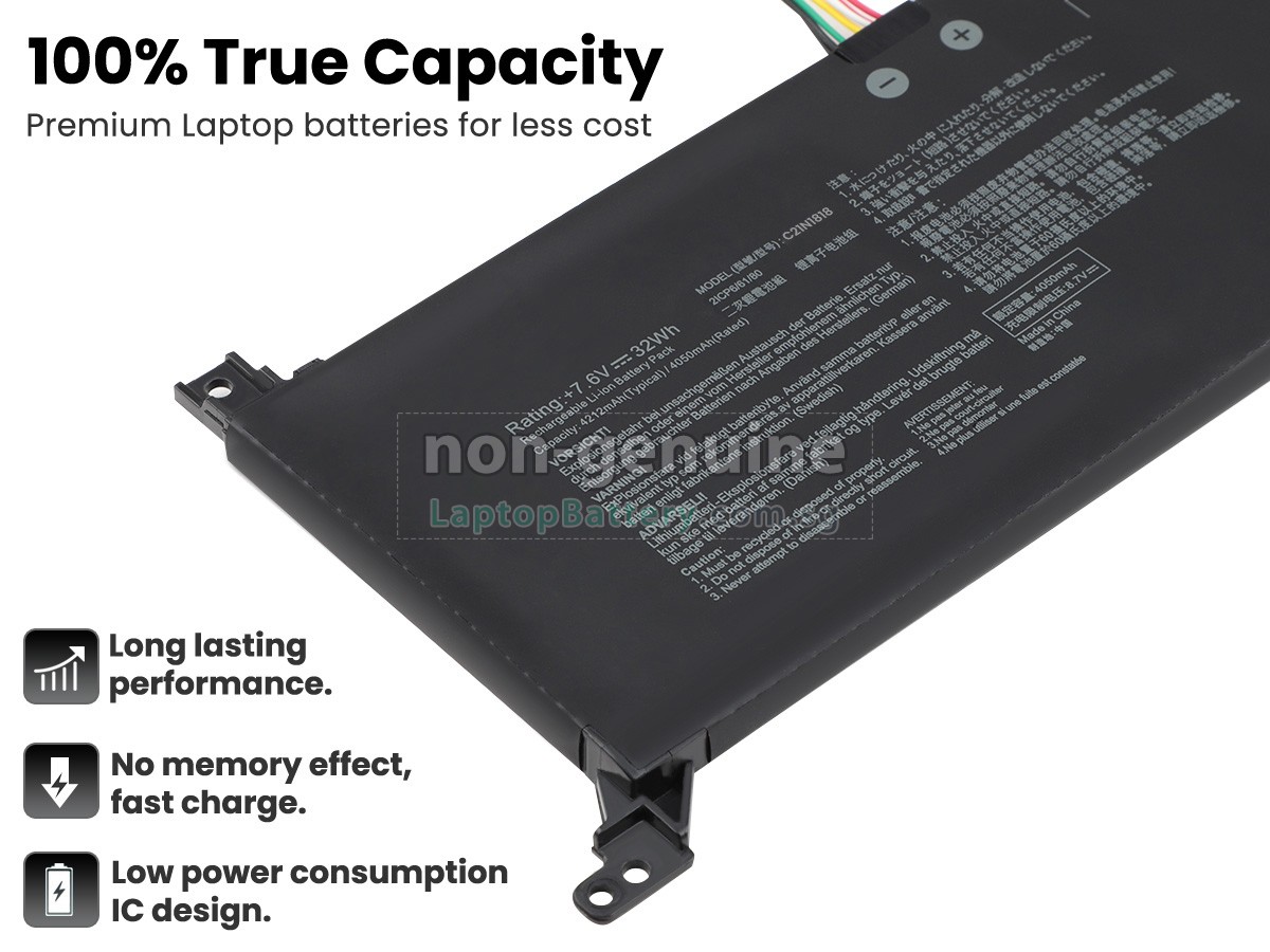 Buy with confidence! Our Website is your source for high quality Asus laptop batteries. This brand new 32Wh(2 cells) replacement Asus R515DA Li-Polymer battery is made with high quality cells from Samsung. Each replacement battery for Asus R515DA laptop has been tested on the Asus system before being dispatched and is 100% compatible with the original manufacturer's specification. When you buy our replacement Asus R515DA battery, you're buying trust!