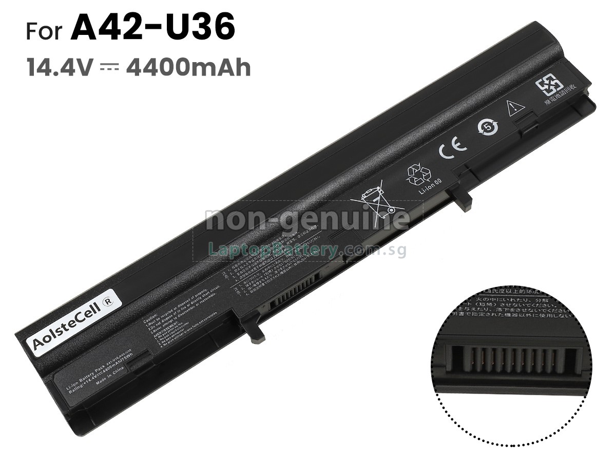Welcome your patronage and thank you for purchasing this high quality replacement Asus U36JC laptop battery at Laptopbattery.com.sg! Before placing an order, please make sure that the part number of your old Asus U36JC battery is listed as below and has the same shape as our replacement U36JC battery's images (please view the larger images for details).