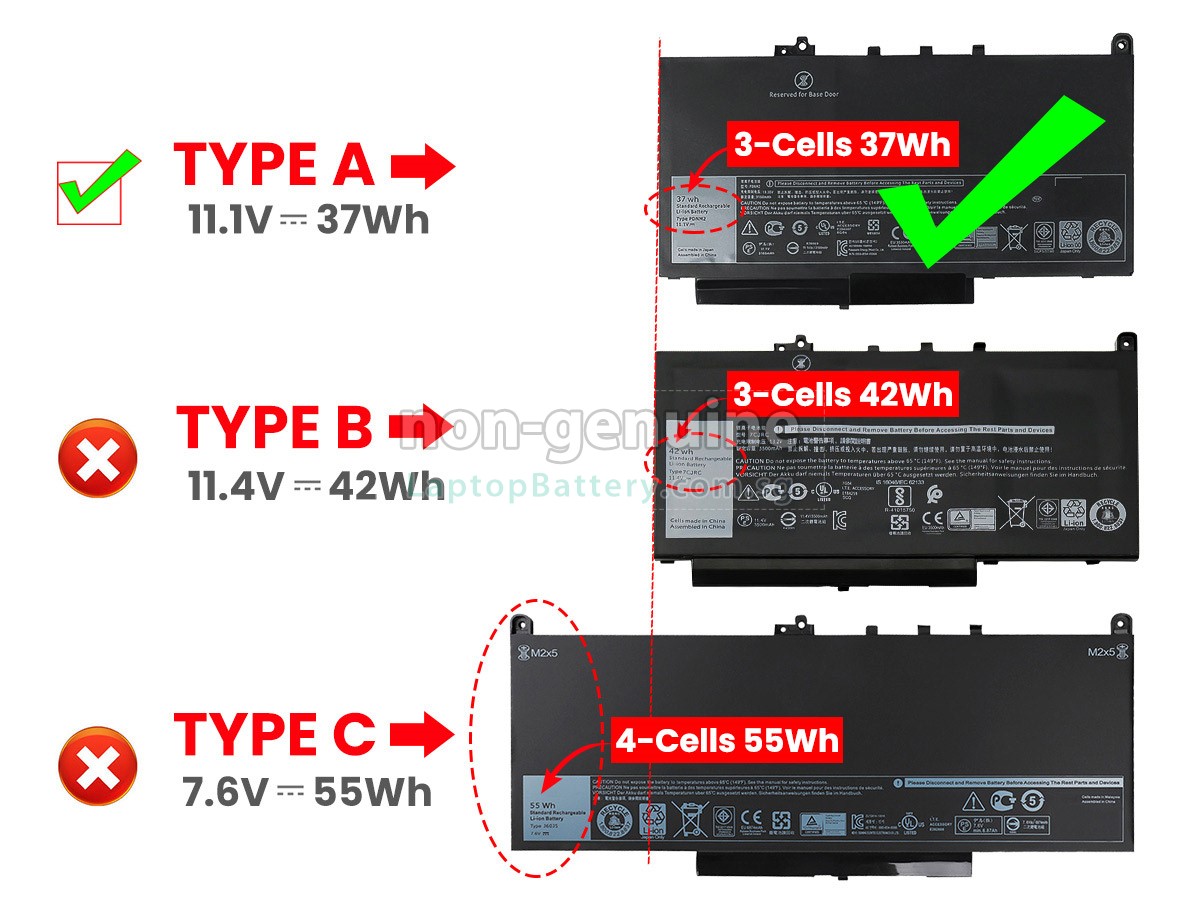 A: First, find out the part number of your old battery or the model name of your laptop (e.g. 'Dell J6OJ5') and match with our product compatibility table. Second, please compare the old battery with our product images to make sure their shapes are the same. Lastly, check the voltage (rating) is the same as the old one. For more details please click How to find one correct battery for my laptop?