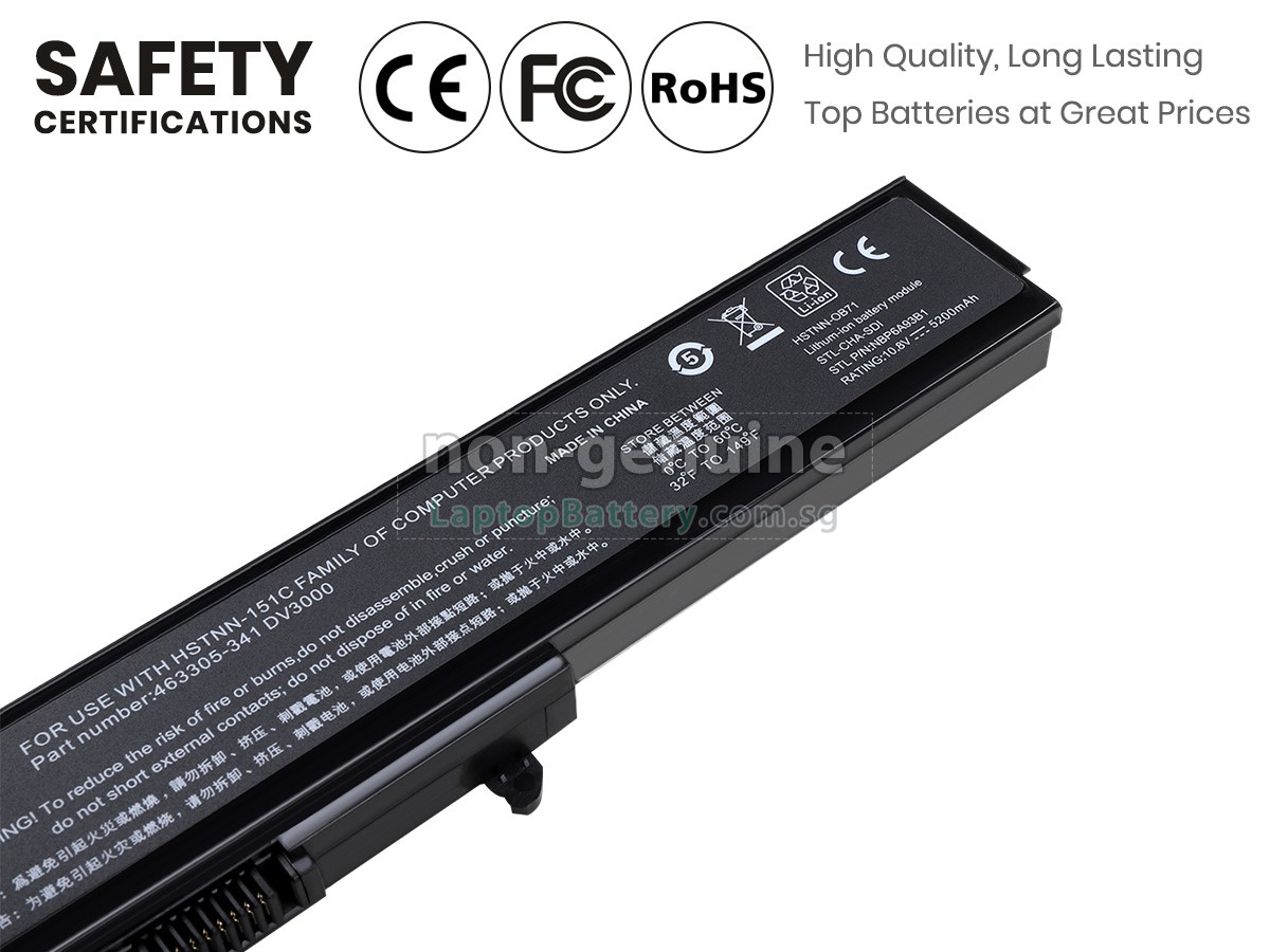 Welcome your patronage and thank you for purchasing this high quality replacement HP 463305-762 laptop battery at Laptopbattery.com.sg! Before placing an order, please make sure that the part number of your old HP 463305-762 battery is listed as below and has the same shape as our replacement 463305-762 battery's images (please view the larger images for details).