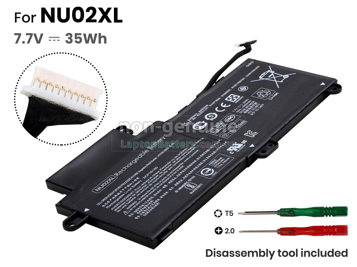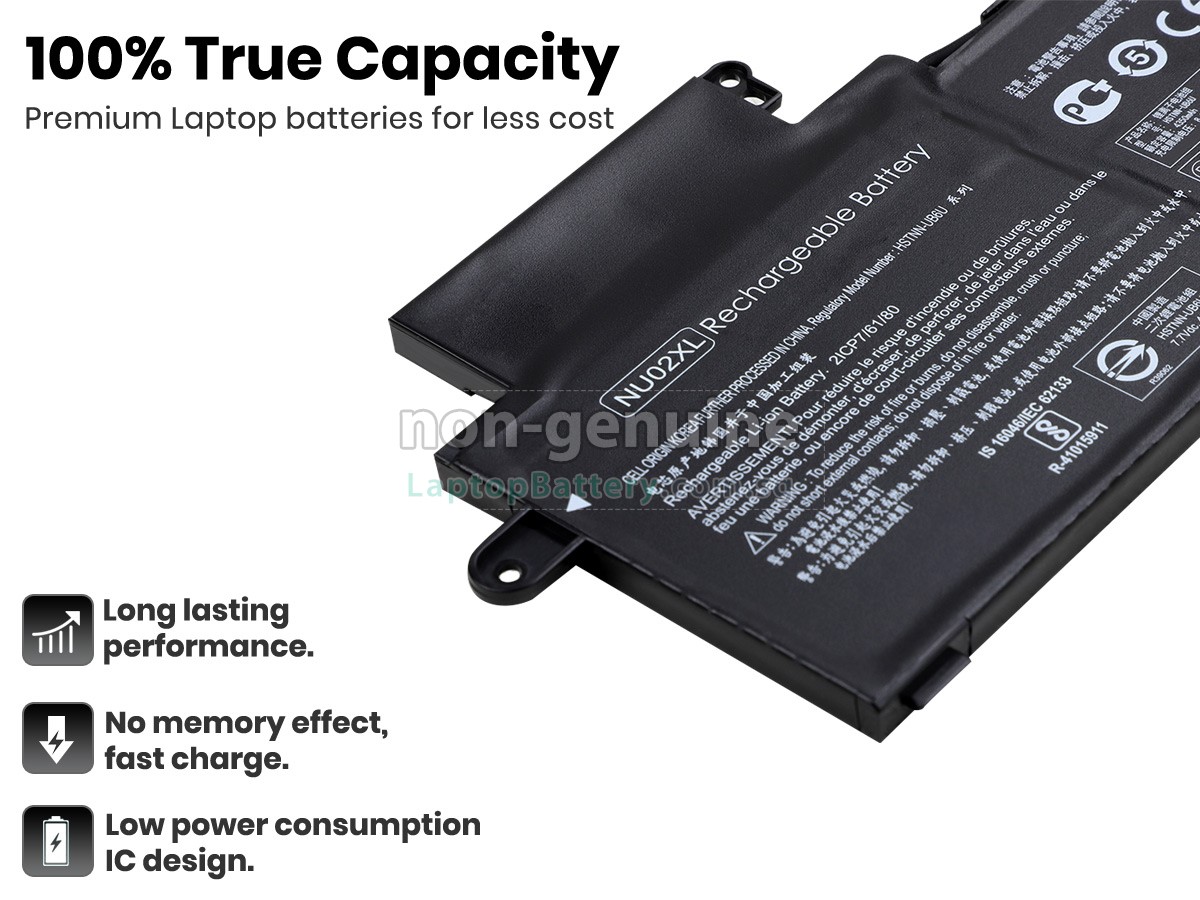 Buy with confidence! Our Website is your source for high quality HP laptop batteries. This brand new 35Wh(2 cells) replacement HP NU02035XL Li-Polymer battery is made with high quality cells from Samsung. Each replacement battery for HP NU02035XL laptop has been tested on the HP system before being dispatched and is 100% compatible with the original manufacturer's specification. When you buy our replacement HP NU02035XL battery, you're buying trust!