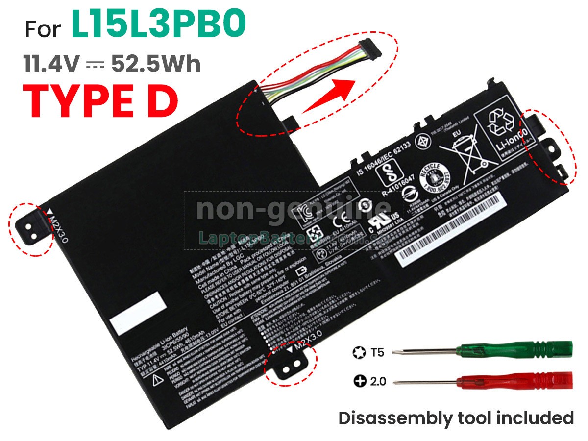 Welcome your patronage and thank you for purchasing this high quality replacement Lenovo L15C2PB1 laptop battery at Laptopbattery.com.sg! Before placing an order, please make sure that the part number of your old Lenovo L15C2PB1 battery is listed as below and has the same shape as our replacement L15C2PB1 battery's images (please view the larger images for details).