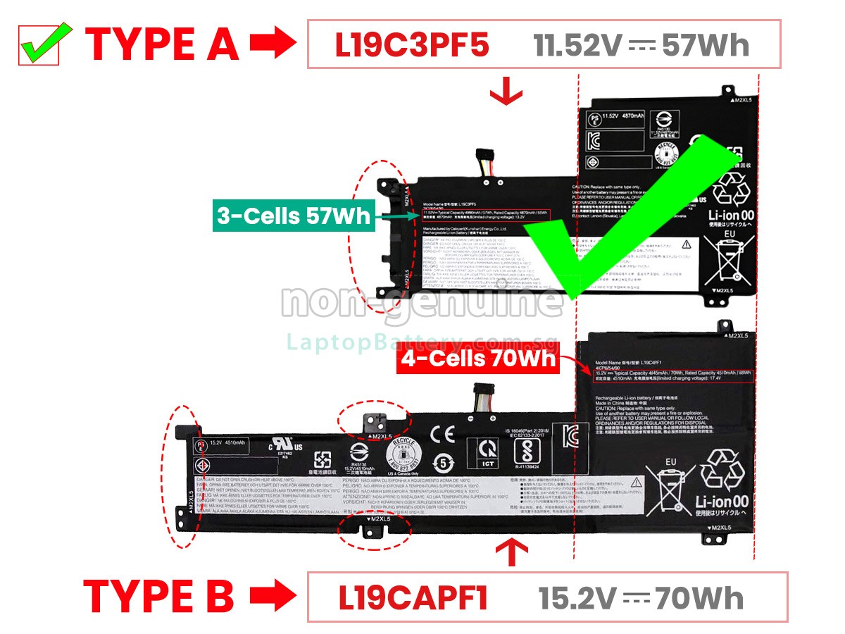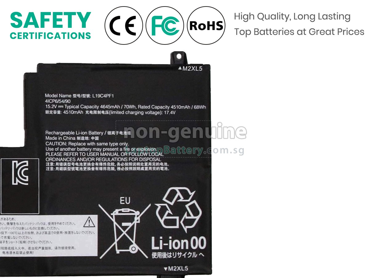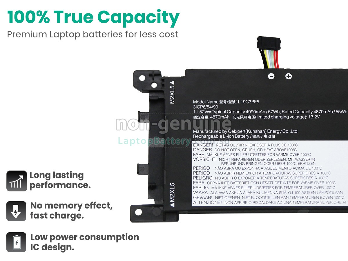 Welcome your patronage and thank you for purchasing this high quality replacement Lenovo L19C3PF4 laptop battery at Laptopbattery.com.sg! Before placing an order, please make sure that the part number of your old Lenovo L19C3PF4 battery is listed as below and has the same shape as our replacement L19C3PF4 battery's images (please view the larger images for details).