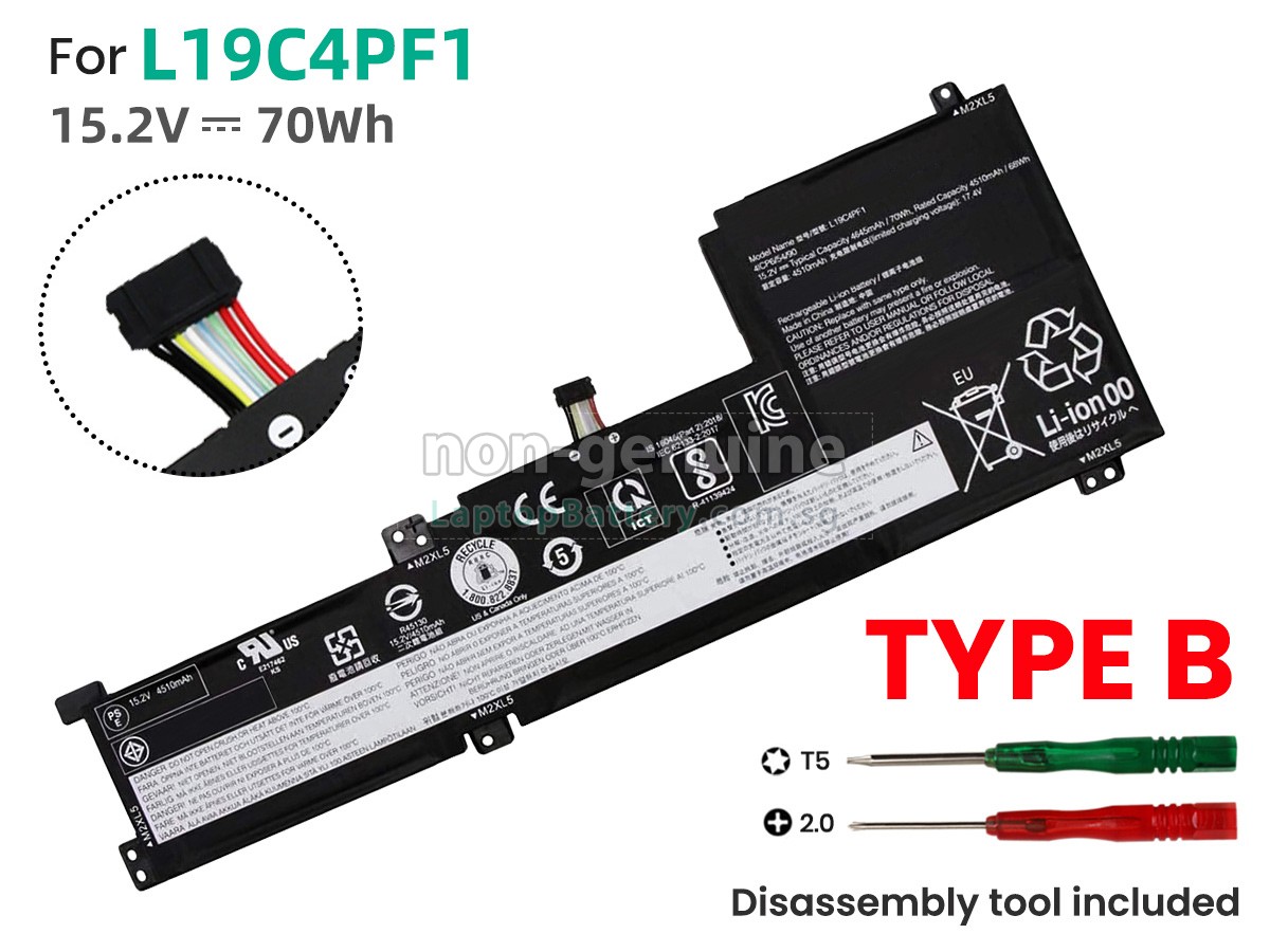 Buy with confidence! Our Website is your source for high quality Lenovo laptop batteries. This brand new 70Wh(4 cells) replacement Lenovo L19C3PF4 Li-Polymer battery is made with high quality cells from Samsung. Each replacement battery for Lenovo L19C3PF4 laptop has been tested on the Lenovo system before being dispatched and is 100% compatible with the original manufacturer's specification. When you buy our replacement Lenovo L19C3PF4 battery, you're buying trust!