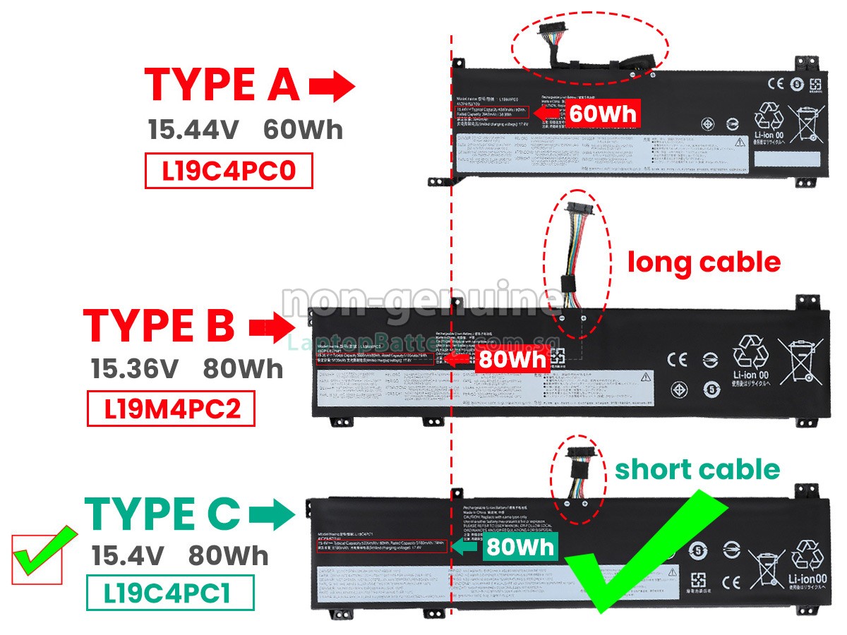 Welcome your patronage and thank you for purchasing this high quality replacement Lenovo L19C4PC1 laptop battery at Laptopbattery.com.sg! Before placing an order, please make sure that the part number of your old Lenovo L19C4PC1 battery is listed as below and has the same shape as our replacement L19C4PC1 battery's images (please view the larger images for details).