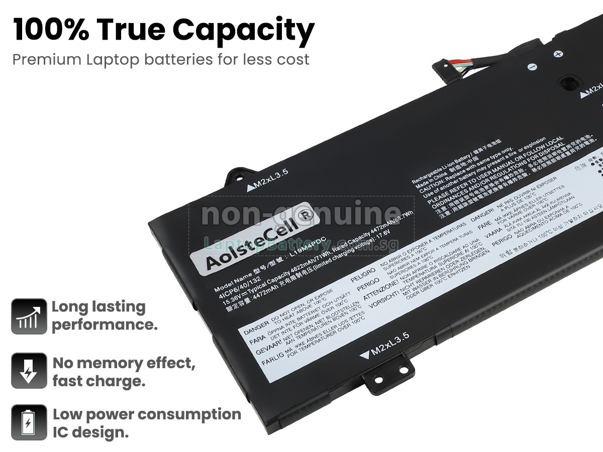 Buy with confidence! Our Website is your source for high quality Lenovo laptop batteries. This brand new 71Wh(4 cells) replacement Lenovo L19M4PDC Li-Polymer battery is made with high quality cells from Samsung. Each replacement battery for Lenovo L19M4PDC laptop has been tested on the Lenovo system before being dispatched and is 100% compatible with the original manufacturer's specification. When you buy our replacement Lenovo L19M4PDC battery, you're buying trust!