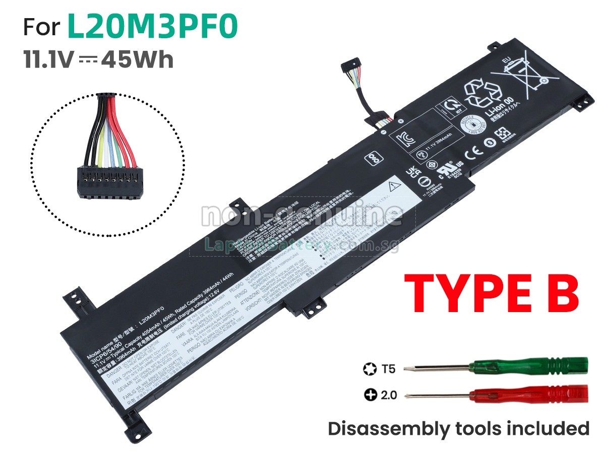Welcome your patronage and thank you for purchasing this high quality replacement Lenovo L20L2PF0 laptop battery at Laptopbattery.com.sg! Before placing an order, please make sure that the part number of your old Lenovo L20L2PF0 battery is listed as below and has the same shape as our replacement L20L2PF0 battery's images (please view the larger images for details).