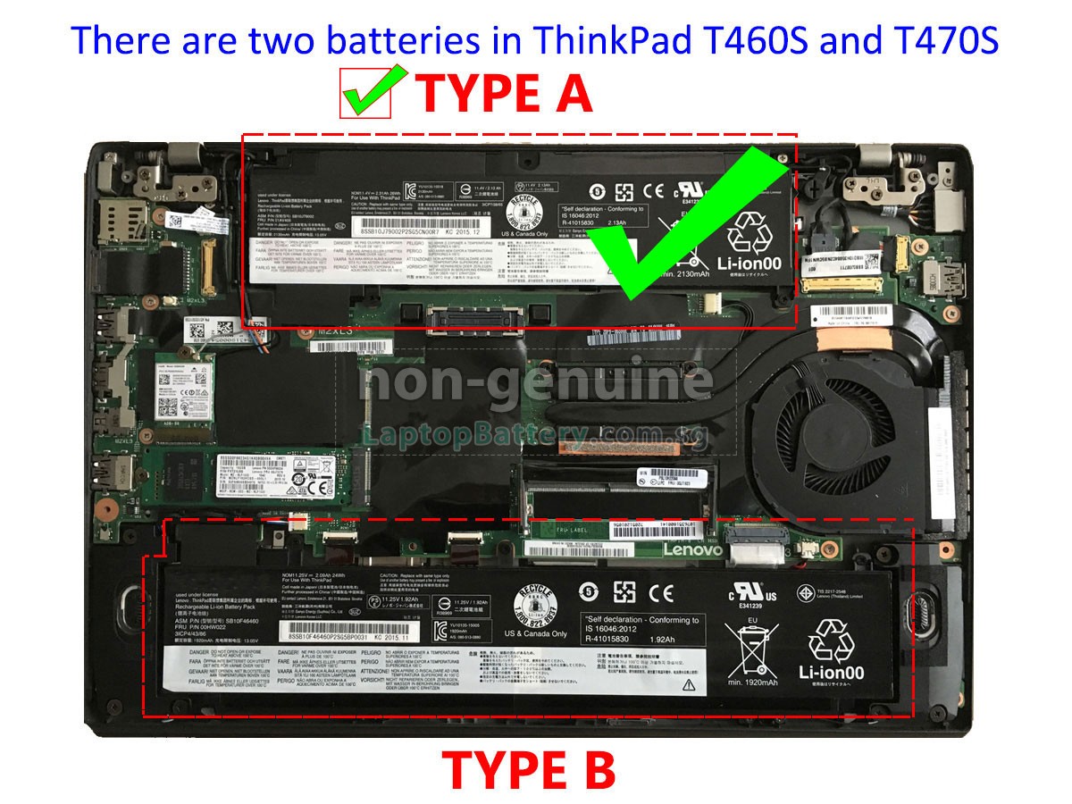 There are two batteries(both internal) in Lenovo ThinkPad T460S and ThinkPad T470S, before placing an order please open your laptop to check which one needs to replaced, ensure order one right battery for replacement.