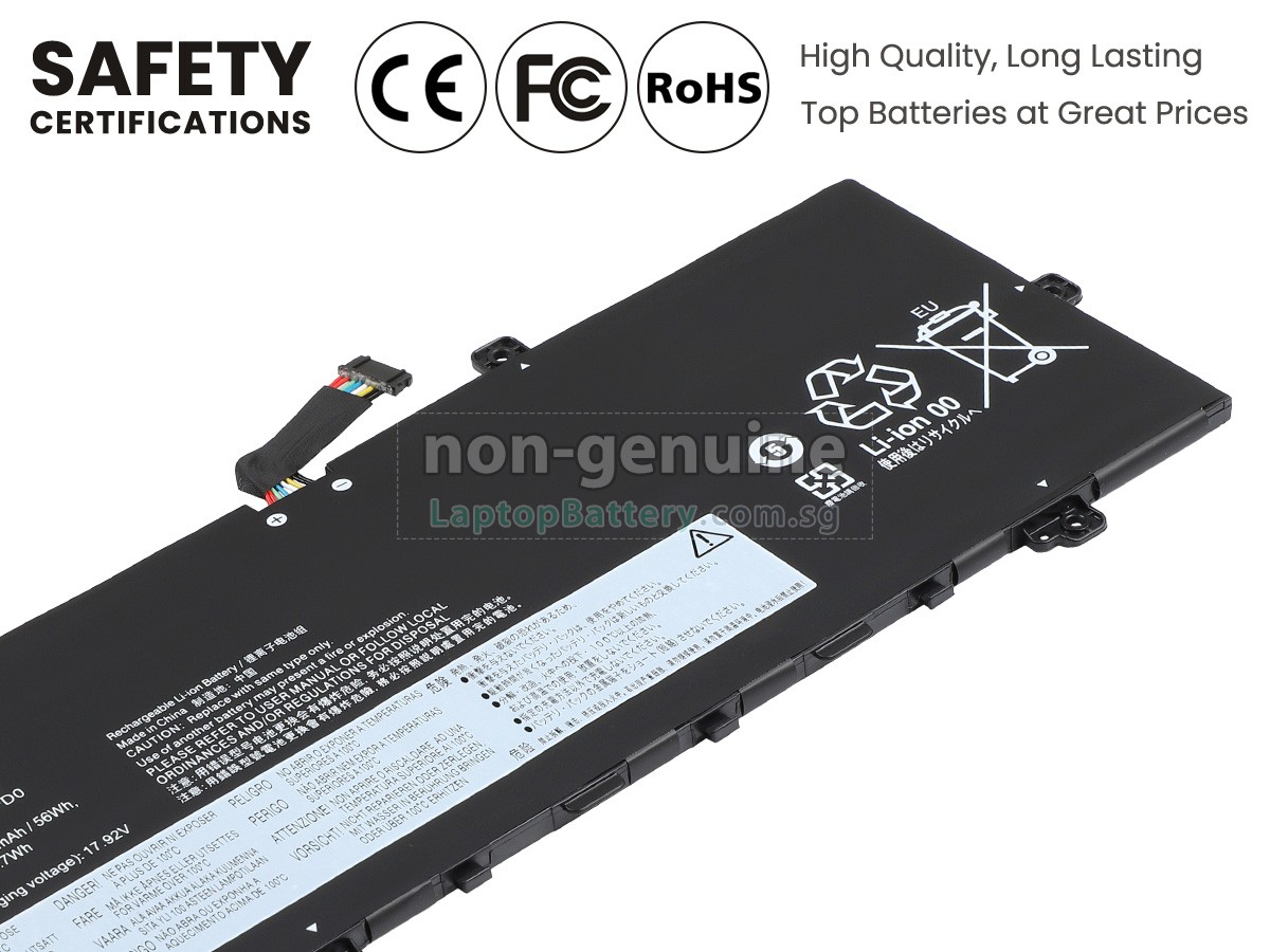 Welcome your patronage and thank you for purchasing this high quality replacement Lenovo THINKBOOK 13X G2 IAP-21AT003SIU laptop battery at Laptopbattery.com.sg! Before placing an order, please make sure that the part number of your old Lenovo THINKBOOK 13X G2 IAP-21AT003SIU battery is listed as below and has the same shape as our replacement THINKBOOK 13X G2 IAP-21AT003SIU battery's images (please view the larger images for details).