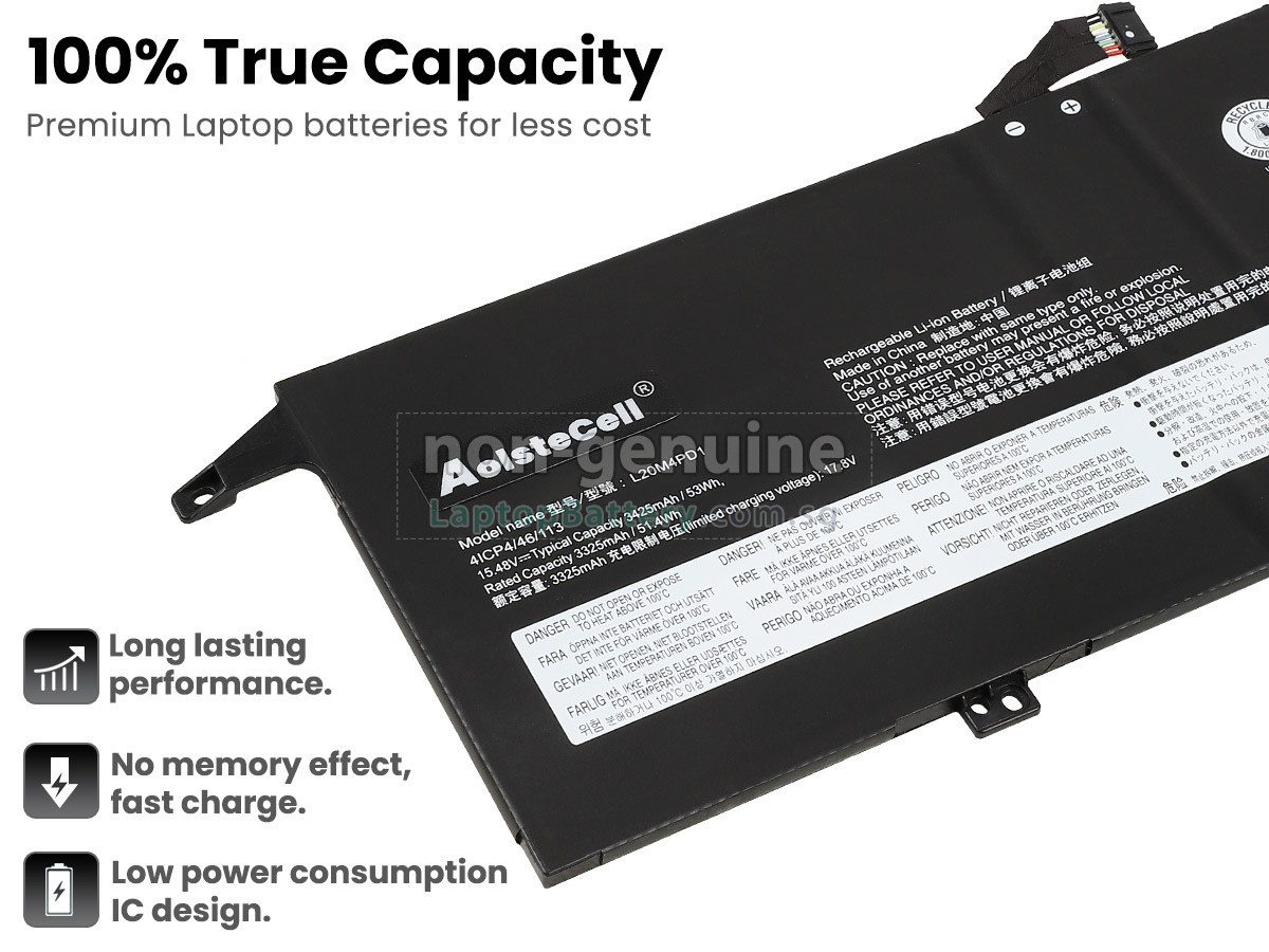 Welcome your patronage and thank you for purchasing this high quality replacement Lenovo THINKBOOK 13X ITG-20WJ0023RA laptop battery at Laptopbattery.com.sg! Before placing an order, please make sure that the part number of your old Lenovo THINKBOOK 13X ITG-20WJ0023RA battery is listed as below and has the same shape as our replacement THINKBOOK 13X ITG-20WJ0023RA battery's images (please view the larger images for details).