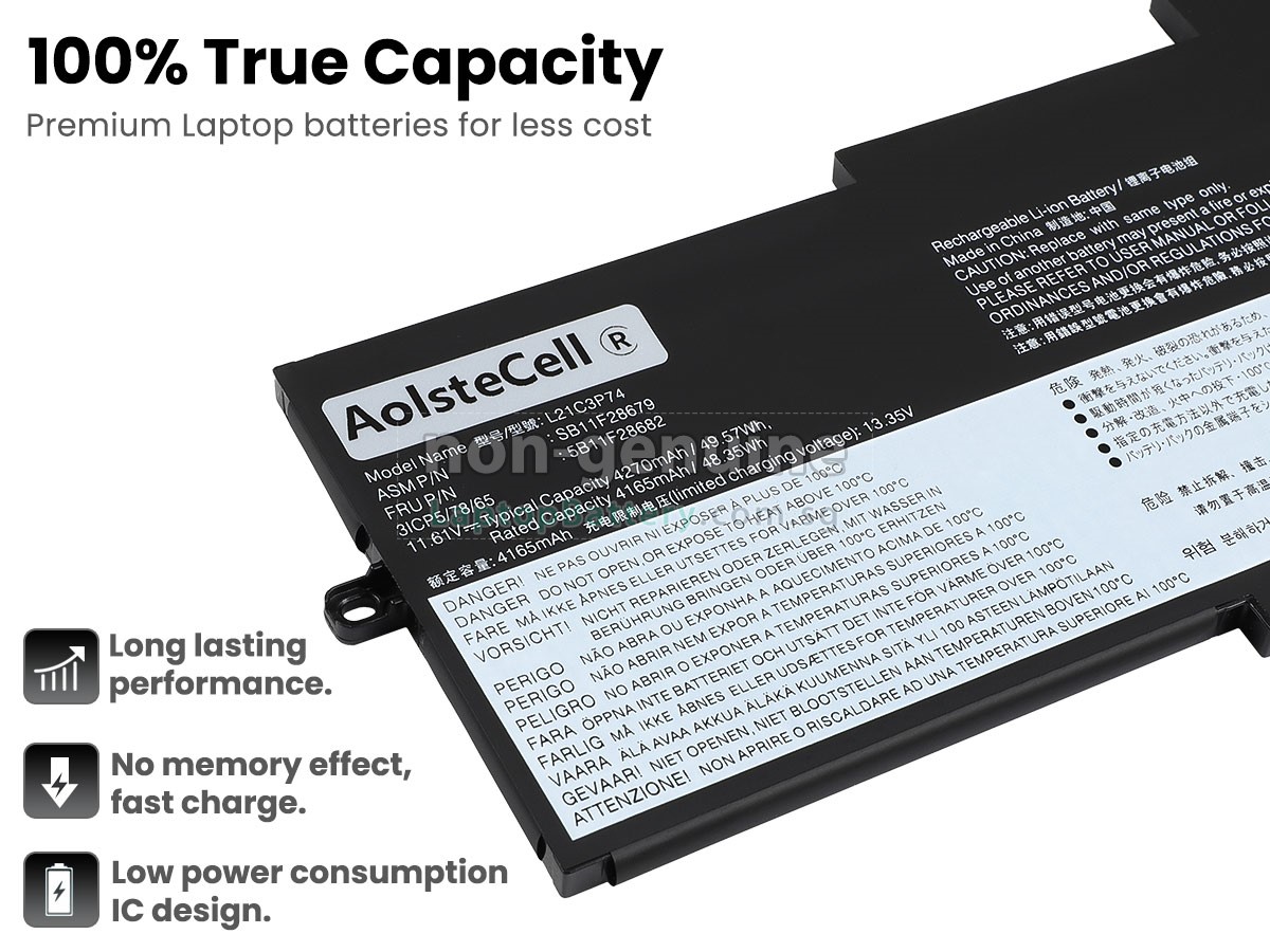 Buy with confidence! Our Website is your source for high quality Lenovo laptop batteries. This brand new 49.57Wh(3 cells) replacement Lenovo ThinkPad X1 NANO GEN 2-21E80026CY Li-Polymer battery is made with high quality cells from Samsung. Each replacement battery for Lenovo ThinkPad X1 NANO GEN 2-21E80026CY laptop has been tested on the Lenovo system before being dispatched and is 100% compatible with the original manufacturer's specification. When you buy our replacement Lenovo ThinkPad X1 NANO GEN 2-21E80026CY battery, you're buying trust!