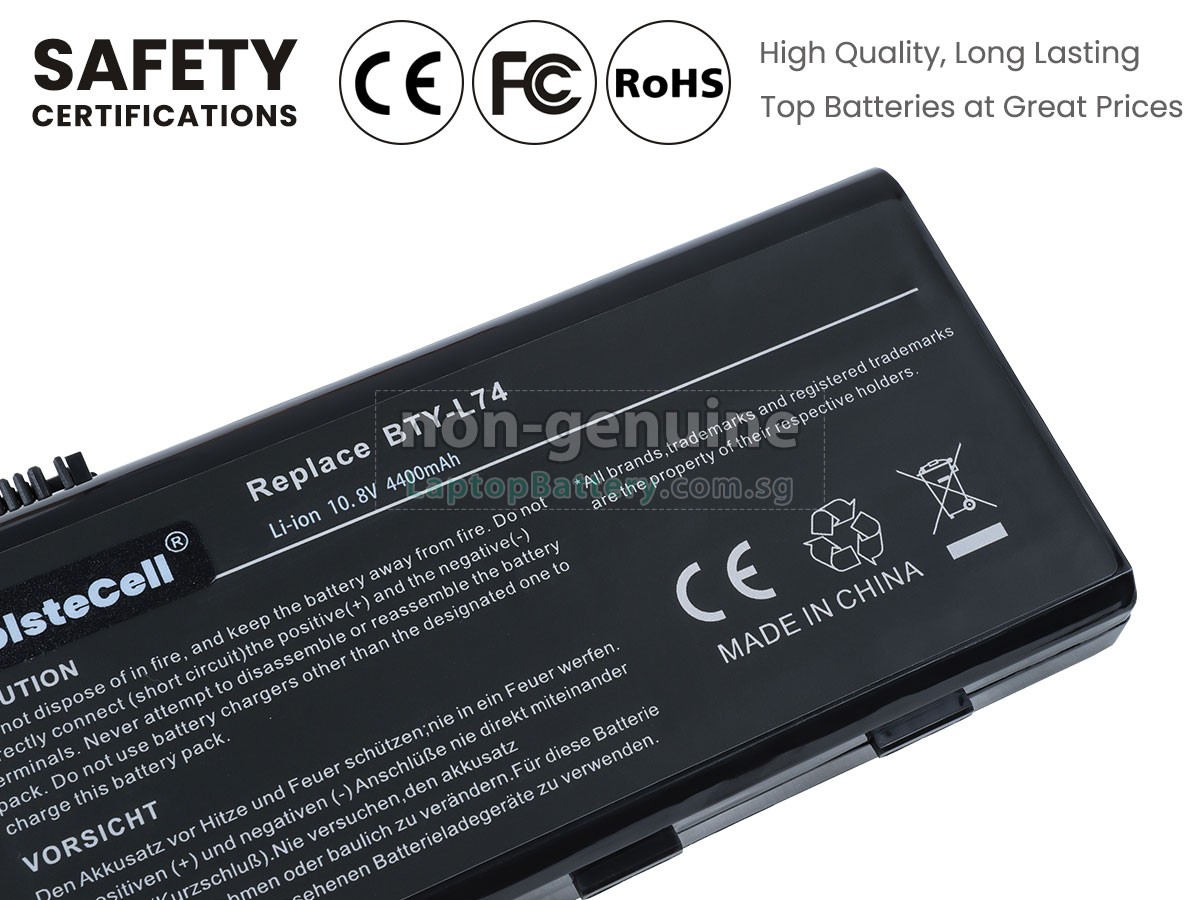 Welcome your patronage and thank you for purchasing this high quality replacement MSI CR700-231 laptop battery at Laptopbattery.com.sg! Before placing an order, please make sure that the part number of your old MSI CR700-231 battery is listed as below and has the same shape as our replacement CR700-231 battery's images (please view the larger images for details).