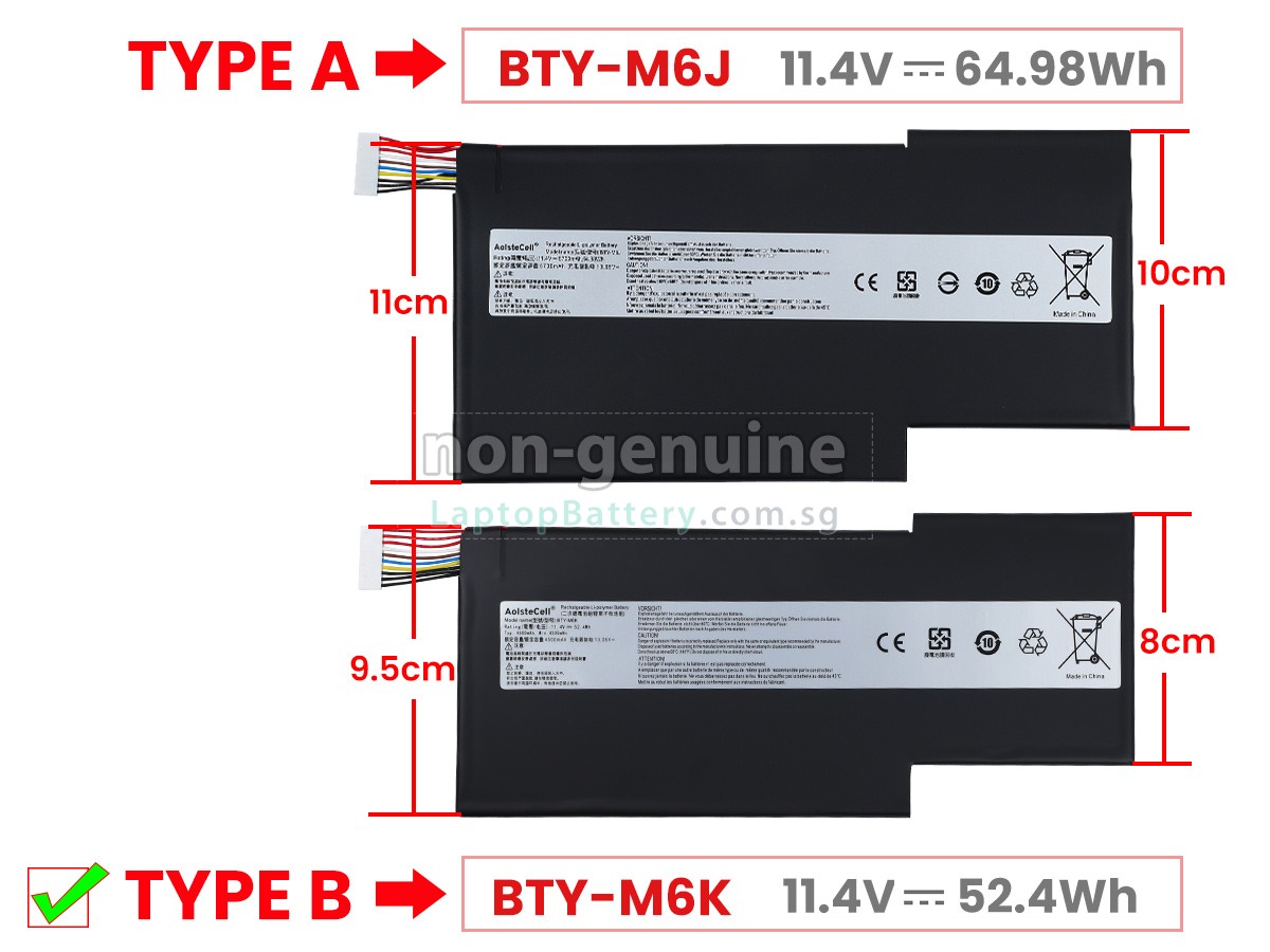 Before placing an order please check your old battery's model name at first, ensure the Battery Model Name is BTY-M6K(11.4V,4500mAh 52.4Wh),not is BTY-M6J(11.4V,5700mAh,64.98Wh). Since BTY-M6K and BTY-M6J batteries are very similar, but not the same battery.
