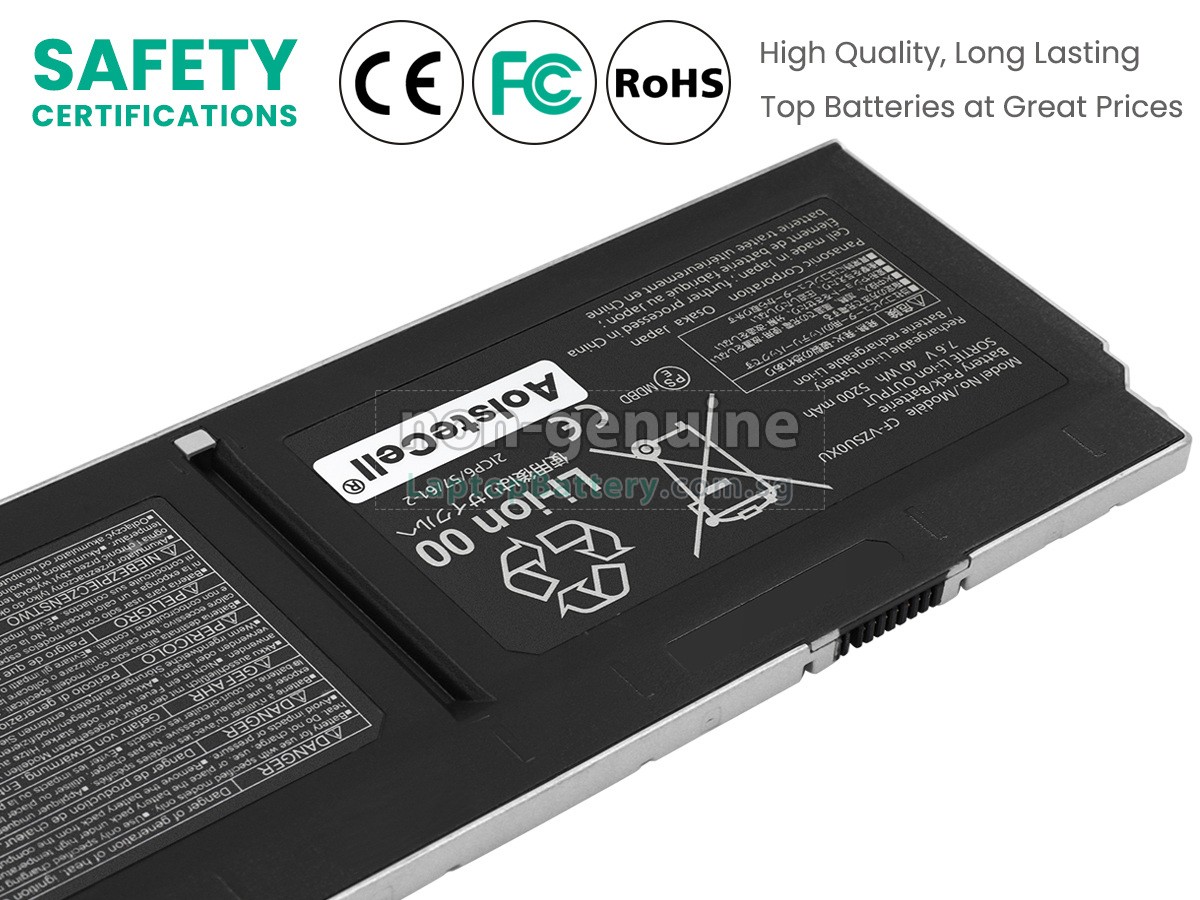 Buy with confidence! Our Website is your source for high quality Panasonic laptop batteries. This brand new 5200mAh(4 cells) replacement Panasonic CF-XZ62 Li-ion battery is made with high quality cells from Samsung. Each replacement battery for Panasonic CF-XZ62 laptop has been tested on the Panasonic system before being dispatched and is 100% compatible with the original manufacturer's specification. When you buy our replacement Panasonic CF-XZ62 battery, you're buying trust!
