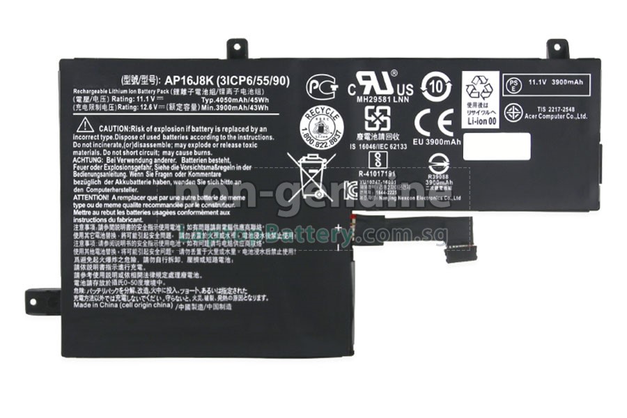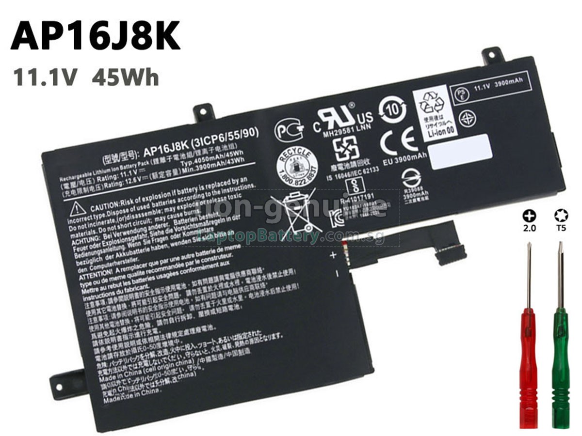 Welcome your patronage and thank you for purchasing this high quality replacement Acer AP16J5K laptop battery at Laptopbattery.com.sg! Before placing an order, please make sure that the part number of your old Acer AP16J5K battery is listed as below and has the same shape as our replacement AP16J5K battery's images (please view the larger images for details).