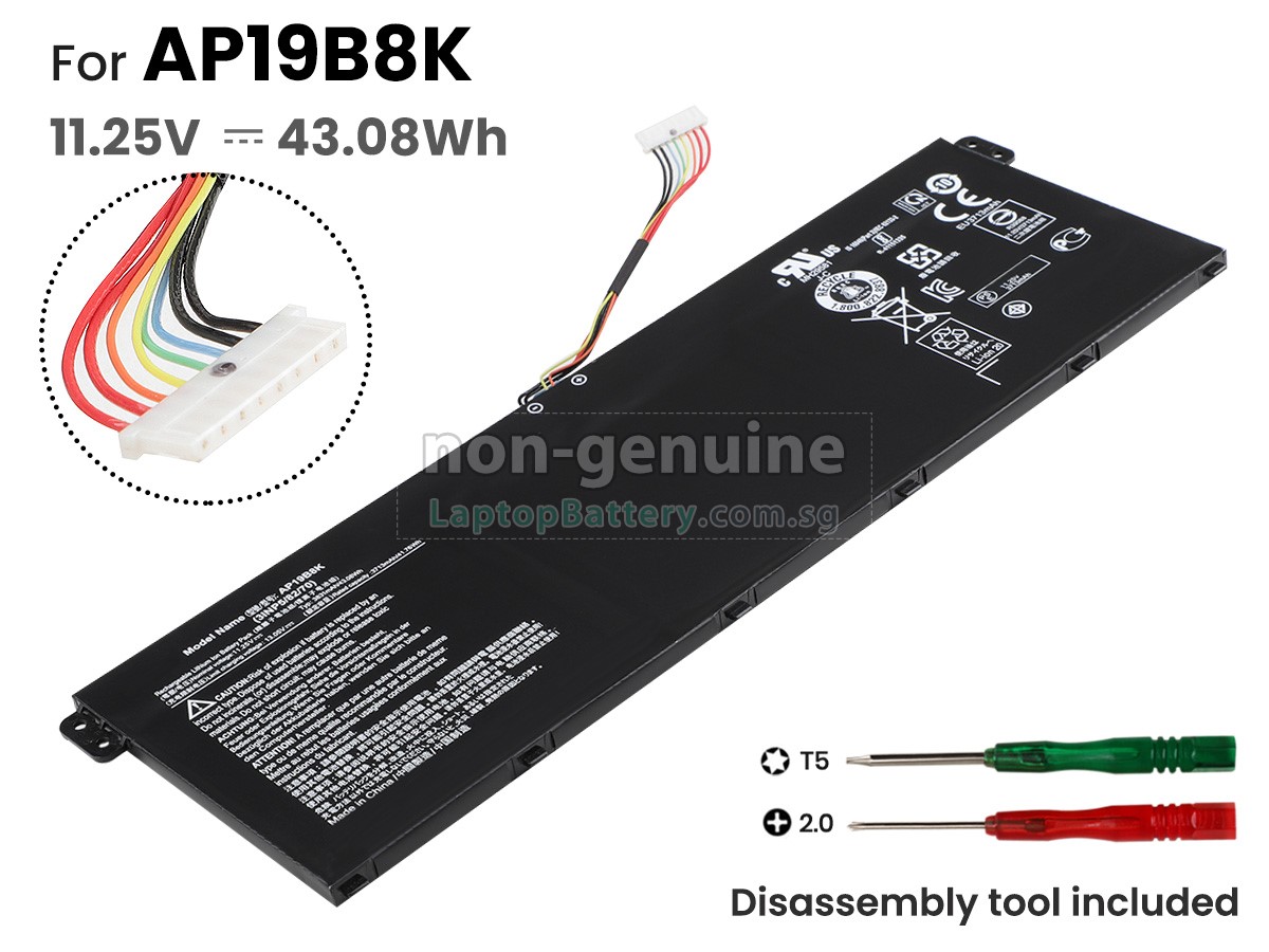 Welcome your patronage and thank you for purchasing this high quality replacement Acer AP19B5K laptop battery at Laptopbattery.com.sg! Before placing an order, please make sure that the part number of your old Acer AP19B5K battery is listed as below and has the same shape as our replacement AP19B5K battery's images (please view the larger images for details).
