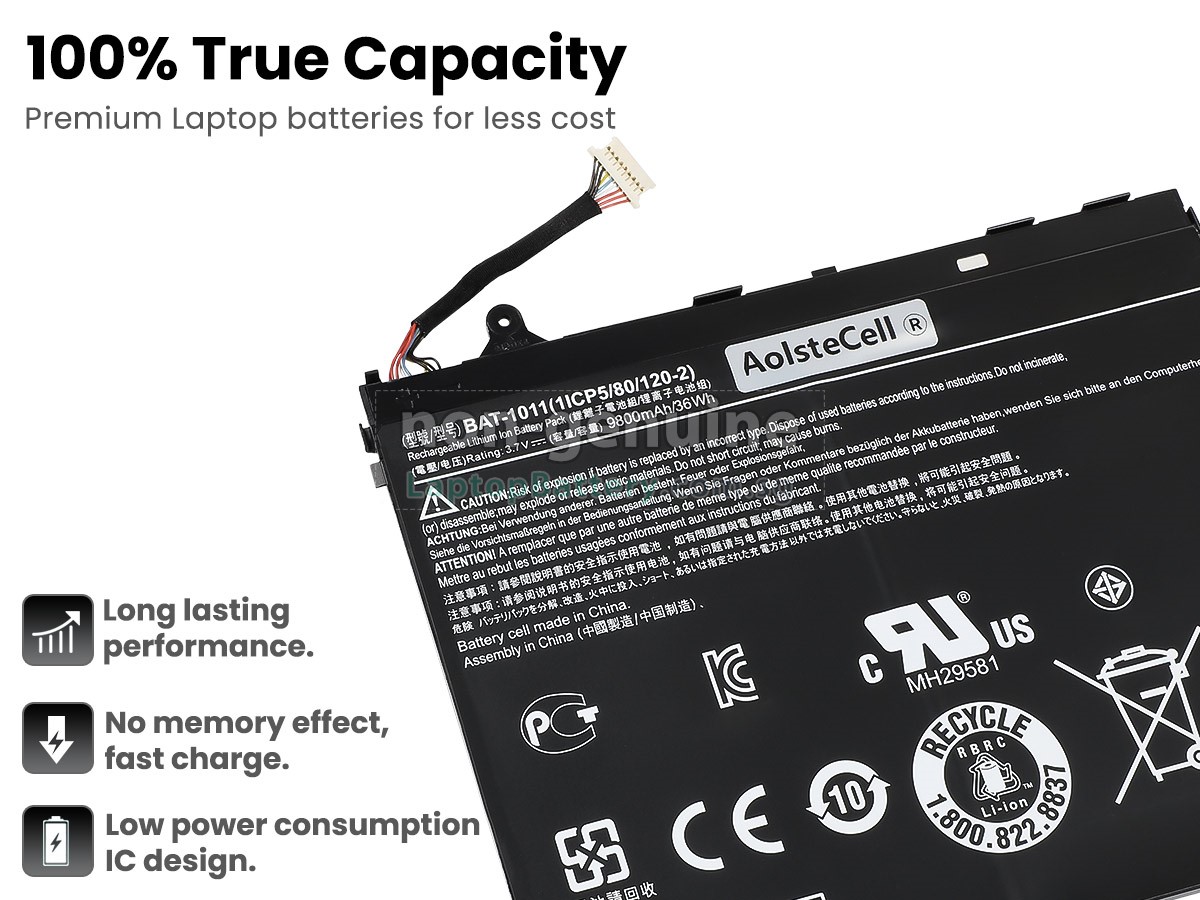 Buy with confidence! Our Website is your source for high quality Acer laptop batteries. This brand new 9800mAh(2 cells) replacement Acer BAT-1001 Li-Polymer battery is made with high quality cells from Samsung. Each replacement battery for Acer BAT-1001 laptop has been tested on the Acer system before being dispatched and is 100% compatible with the original manufacturer's specification. When you buy our replacement Acer BAT-1001 battery, you're buying trust!