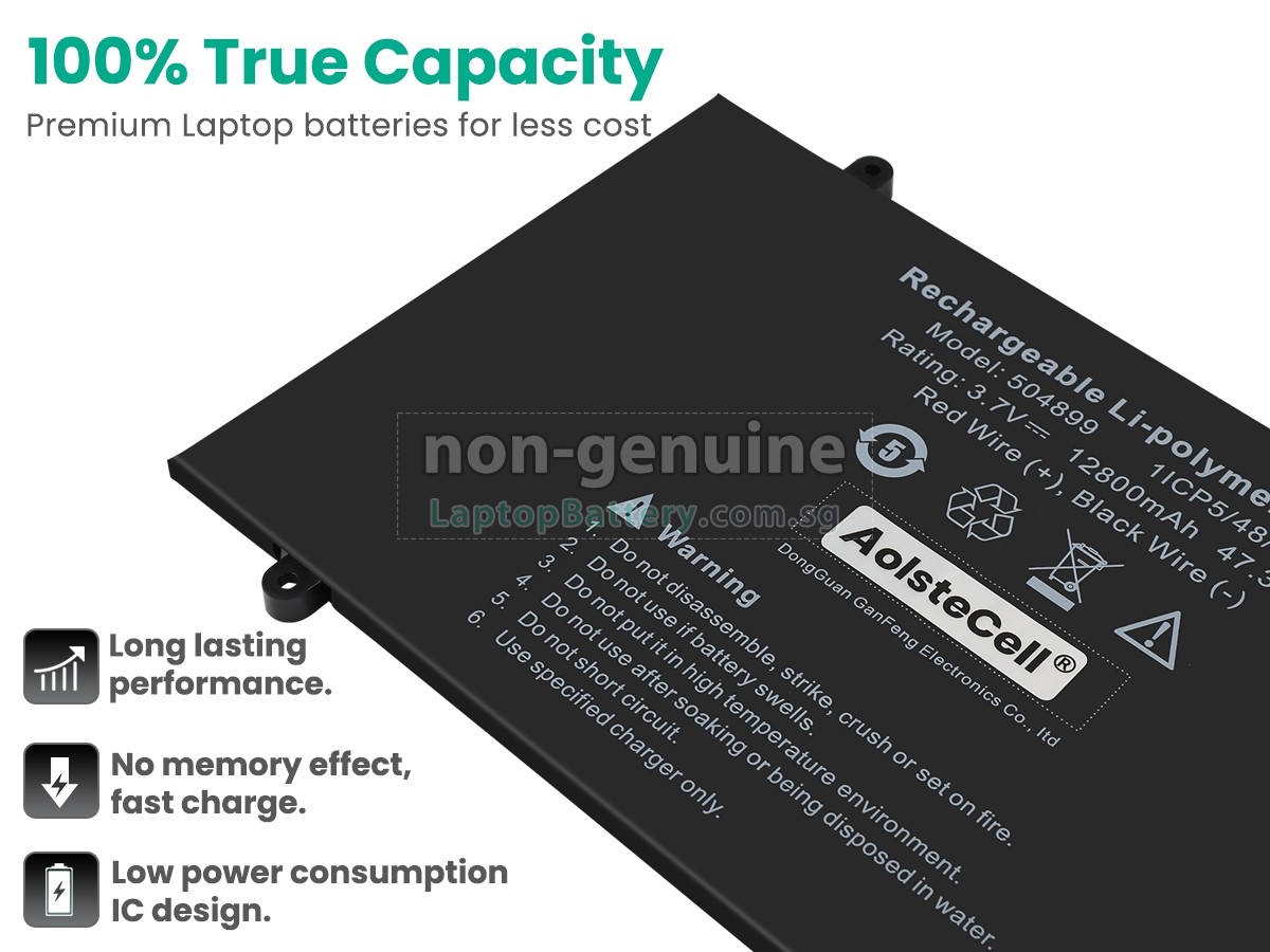 Buy with confidence! Our Website is your source for high quality AolsteCell laptop batteries. This brand new 47.36Wh(4 cells) replacement AolsteCell 504899 Li-Polymer battery is made with high quality cells from Samsung. Each replacement battery for AolsteCell 504899 laptop has been tested on the AolsteCell system before being dispatched and is 100% compatible with the original manufacturer's specification. When you buy our replacement AolsteCell 504899 battery, you're buying trust!
