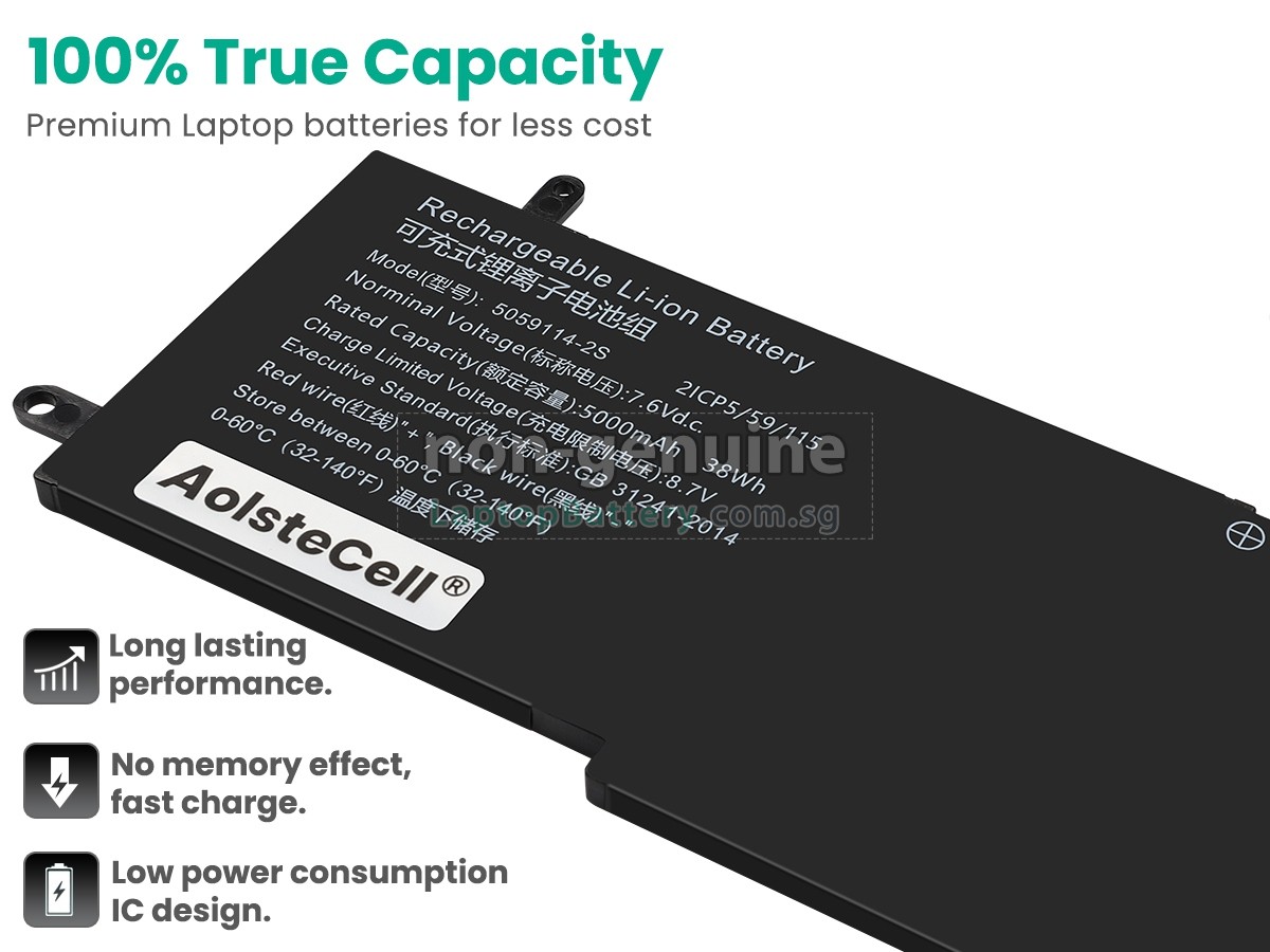 Buy with confidence! Our Website is your source for high quality AolsteCell laptop batteries. This brand new 38Wh(2 cells) replacement AolsteCell 5059114-2S Li-Polymer battery is made with high quality cells from Samsung. Each replacement battery for AolsteCell 5059114-2S laptop has been tested on the AolsteCell system before being dispatched and is 100% compatible with the original manufacturer's specification. When you buy our replacement AolsteCell 5059114-2S battery, you're buying trust!