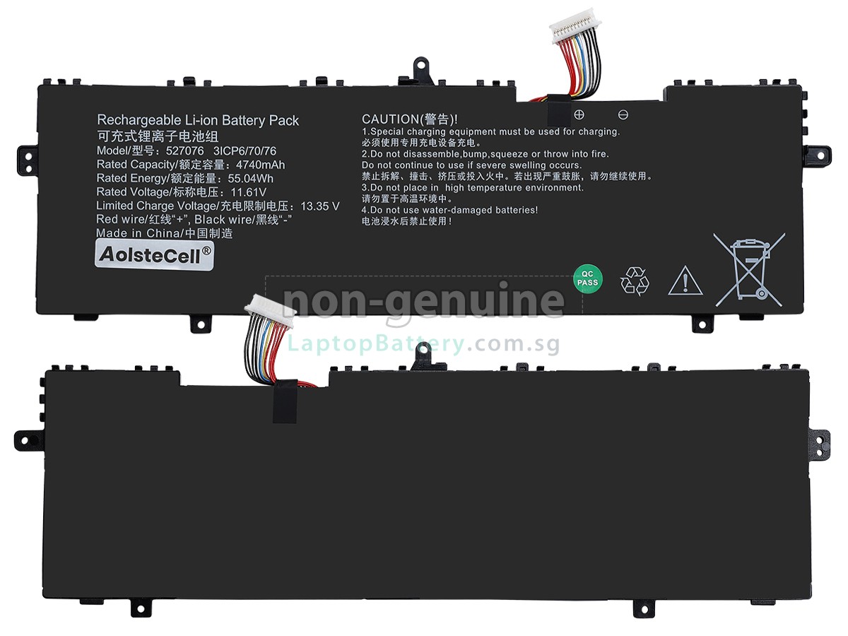 Buy with confidence! Our Website is your source for high quality AolsteCell laptop batteries. This brand new 55.04Wh(3 cells) replacement AolsteCell 527076 Li-ion battery is made with high quality cells from Samsung. Each replacement battery for AolsteCell 527076 laptop has been tested on the AolsteCell system before being dispatched and is 100% compatible with the original manufacturer's specification. When you buy our replacement AolsteCell 527076 battery, you're buying trust!