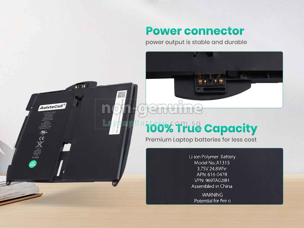 Welcome your patronage and thank you for purchasing this high quality replacement Apple A1337 laptop battery at Laptopbattery.com.sg! Before placing an order, please make sure that the part number of your old Apple A1337 battery is listed as below and has the same shape as our replacement A1337 battery's images (please view the larger images for details).