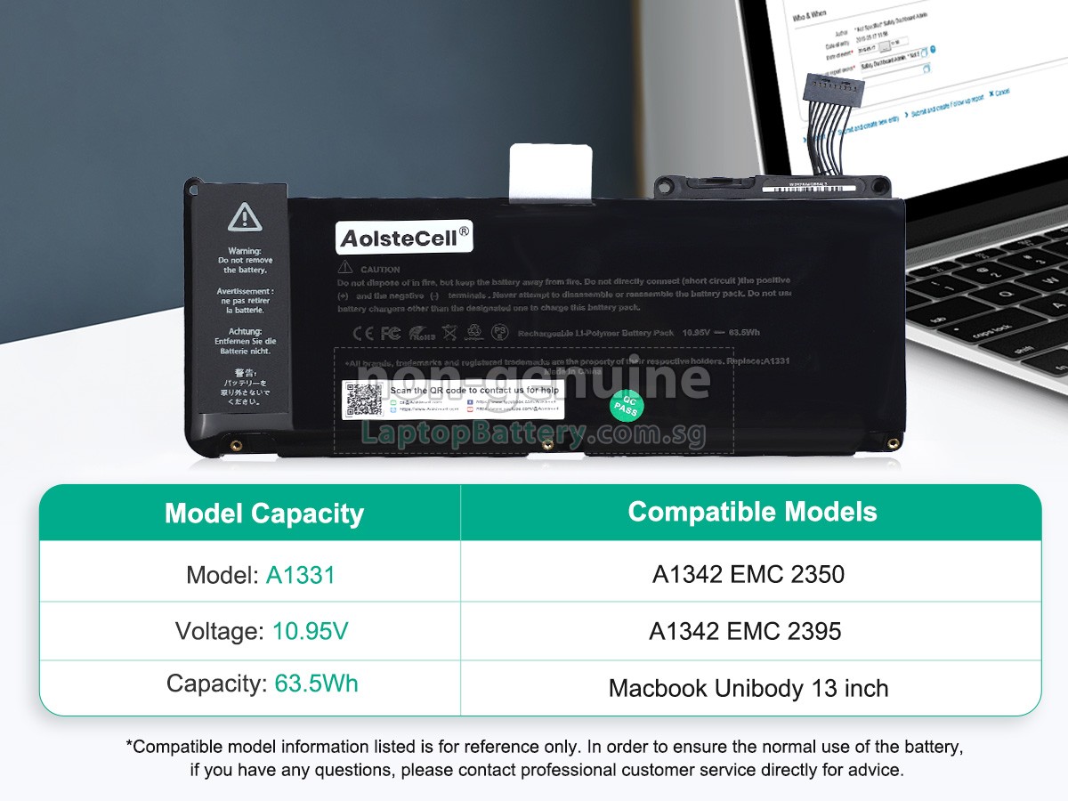 Welcome your patronage and thank you for purchasing this high quality replacement Apple A1342 laptop battery at Laptopbattery.com.sg! Before placing an order, please make sure that the part number of your old Apple A1342 battery is listed as below and has the same shape as our replacement A1342 battery's images (please view the larger images for details).