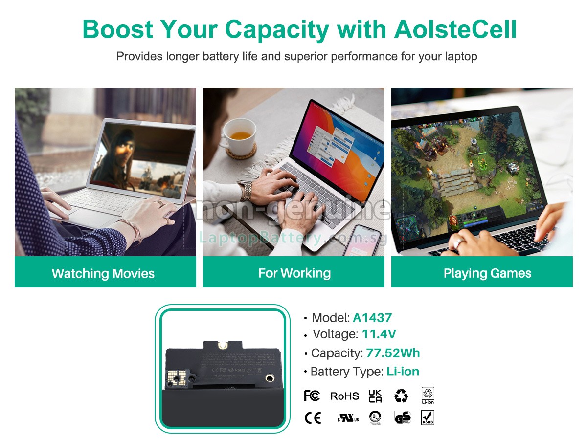 Buy with confidence! Our Website is your source for high quality Apple laptop batteries. This brand new 74Wh(6 cells) replacement Apple MacBook Pro 13.3 inch Retina A1425 Mid-2012 Li-Polymer battery is made with high quality cells from Samsung. Each replacement battery for Apple MacBook Pro 13.3 inch Retina A1425 Mid-2012 laptop has been tested on the Apple system before being dispatched and is 100% compatible with the original manufacturer's specification. When you buy our replacement Apple MacBook Pro 13.3 inch Retina A1425 Mid-2012 battery, you're buying trust!
