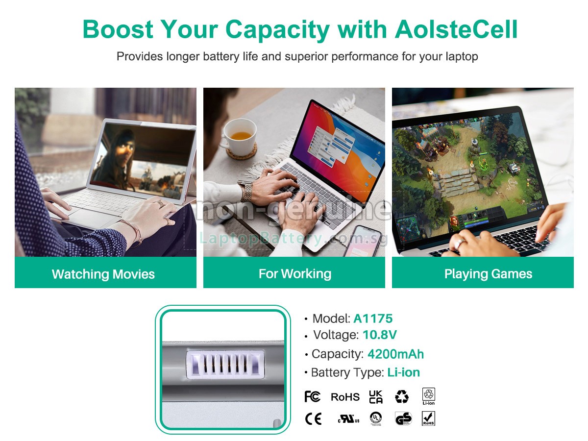 Buy with confidence! Our Website is your source for high quality Apple laptop batteries. This brand new 4200mAh(6 cells) replacement Apple MacBook Pro 15" MB134LL/A Li-ion battery is made with high quality cells from Samsung. Each replacement battery for Apple MacBook Pro 15" MB134LL/A laptop has been tested on the Apple system before being dispatched and is 100% compatible with the original manufacturer's specification. When you buy our replacement Apple MacBook Pro 15" MB134LL/A battery, you're buying trust!