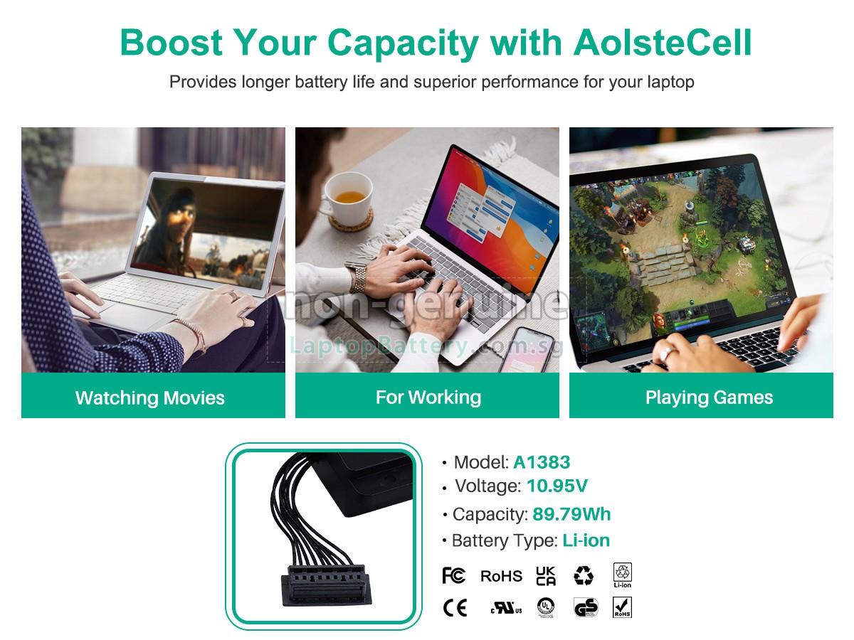 Welcome your patronage and thank you for purchasing this high quality replacement Apple MacBook Pro 17 inch MC725B/A laptop battery at Laptopbattery.com.sg! Before placing an order, please make sure that the part number of your old Apple MacBook Pro 17 inch MC725B/A battery is listed as below and has the same shape as our replacement MacBook Pro 17 inch MC725B/A battery's images (please view the larger images for details).