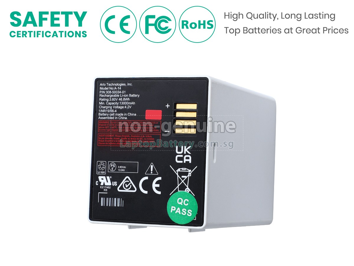 Welcome your patronage and thank you for purchasing this high quality replacement Arlo A-14 battery at Laptopbattery.com.sg! Before placing an order, please make sure that the part number of your old Arlo A-14 battery is listed as below and has the same shape as our replacement A-14 battery's images (please view the larger images for details).