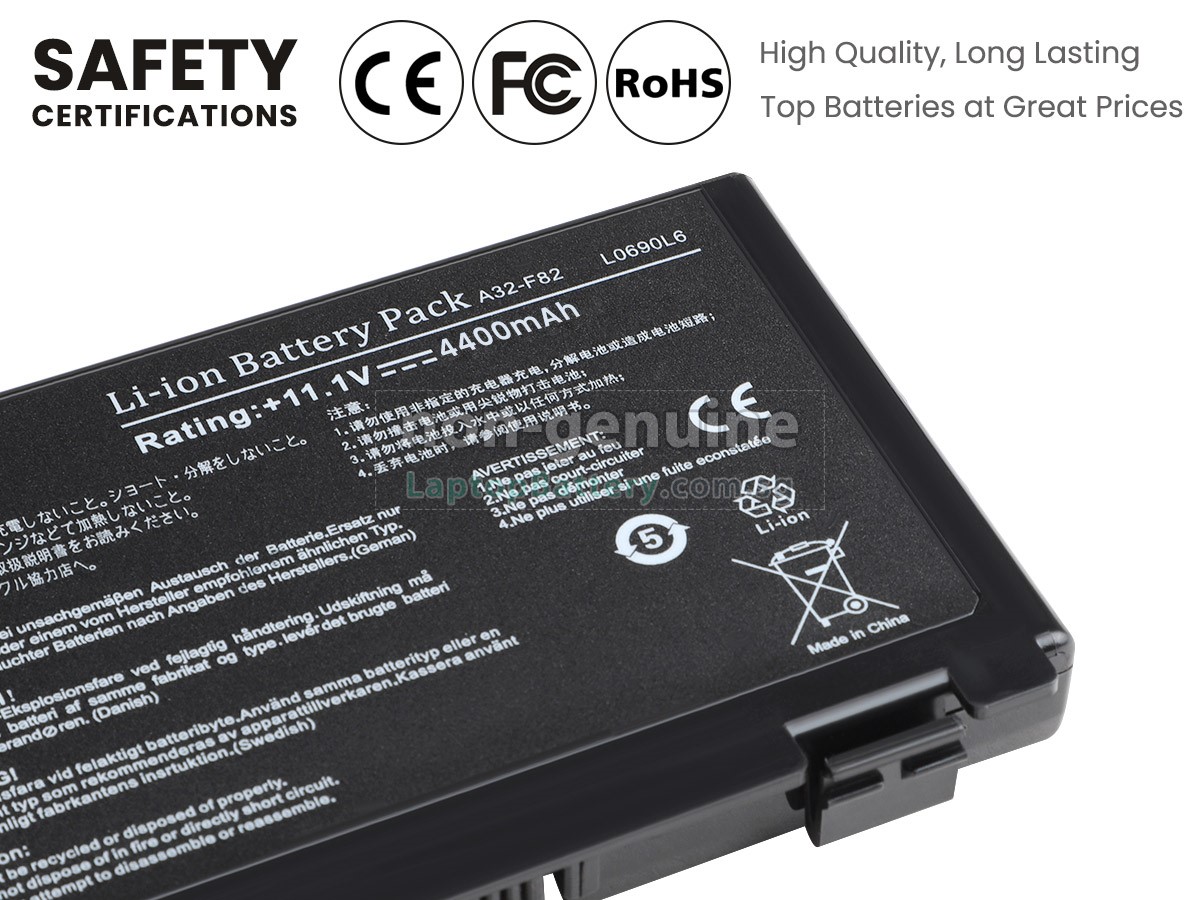 Welcome your patronage and thank you for purchasing this high quality replacement Asus A32-F82 laptop battery at Laptopbattery.com.sg! Before placing an order, please make sure that the part number of your old Asus A32-F82 battery is listed as below and has the same shape as our replacement A32-F82 battery's images (please view the larger images for details).
