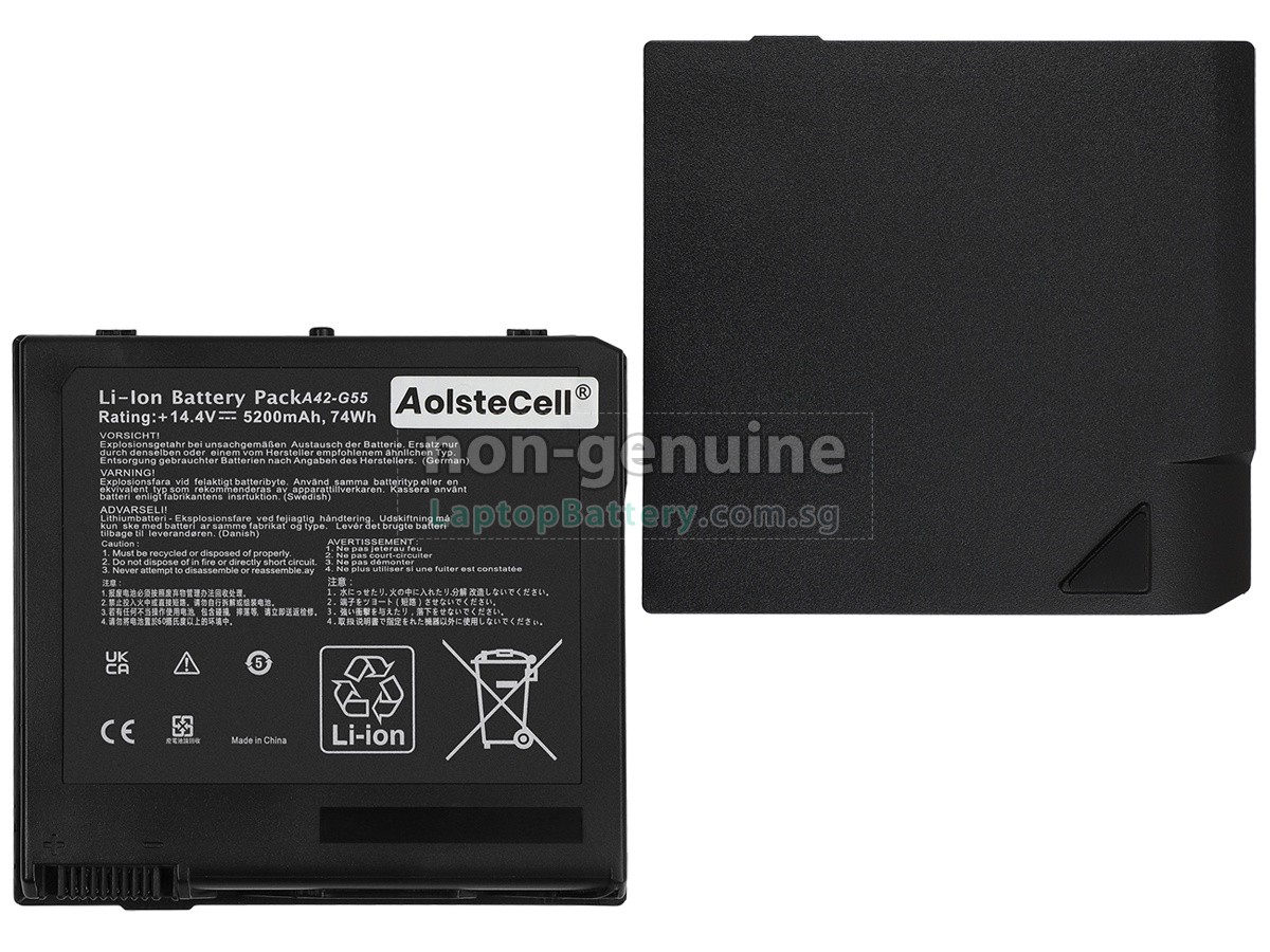 Welcome your patronage and thank you for purchasing this high quality replacement Asus A42-G55 laptop battery at Laptopbattery.com.sg! Before placing an order, please make sure that the part number of your old Asus A42-G55 battery is listed as below and has the same shape as our replacement A42-G55 battery's images (please view the larger images for details).