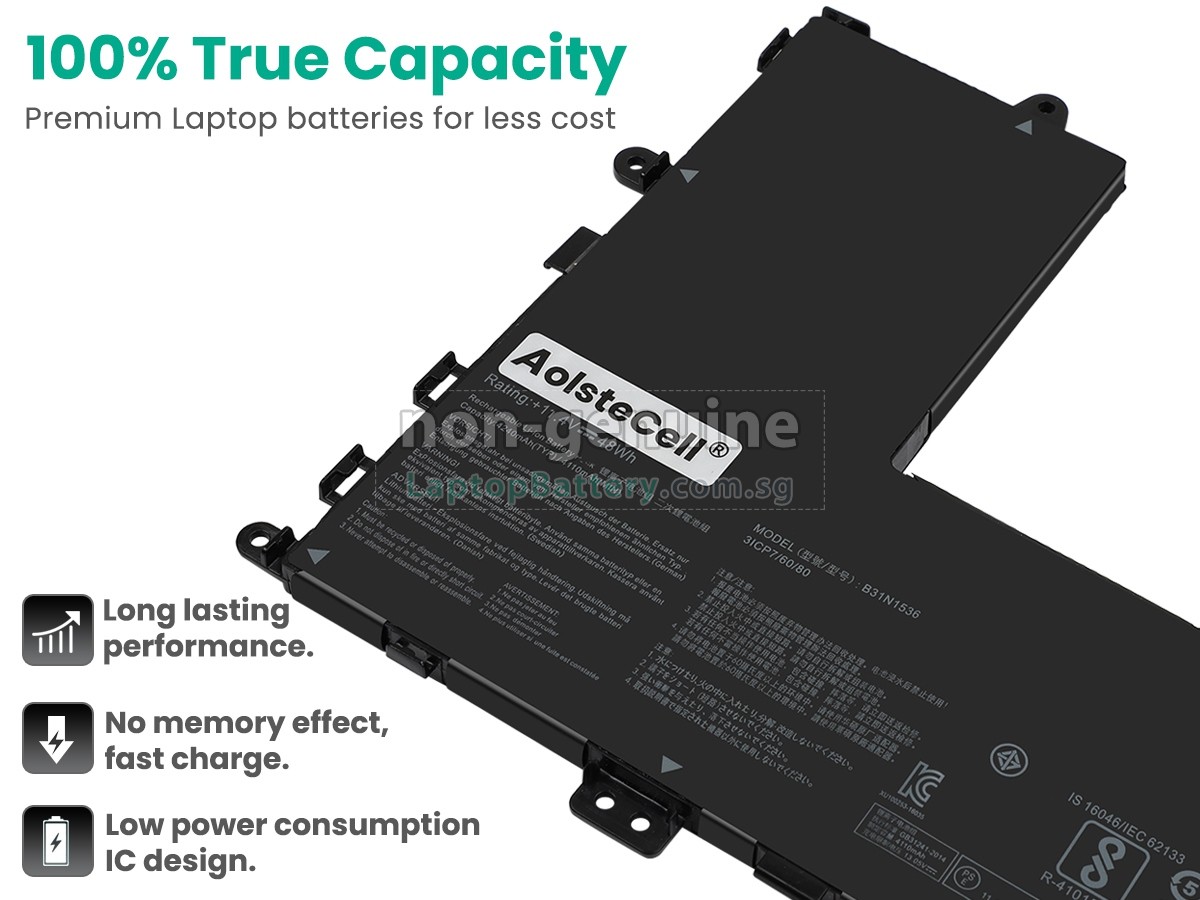 Welcome your patronage and thank you for purchasing this high quality replacement Asus B31N1536 laptop battery at Laptopbattery.com.sg! Before placing an order, please make sure that the part number of your old Asus B31N1536 battery is listed as below and has the same shape as our replacement B31N1536 battery's images (please view the larger images for details).