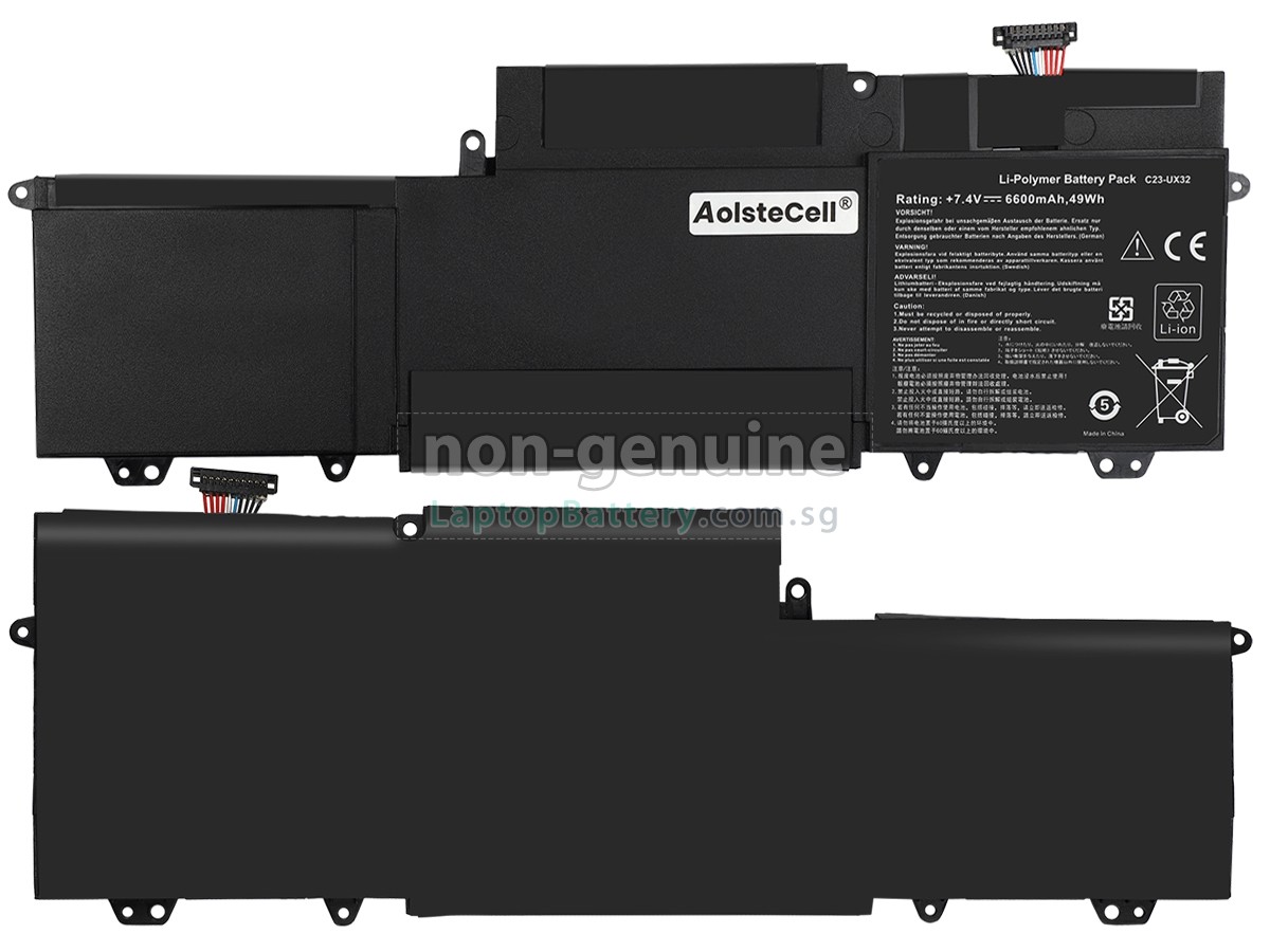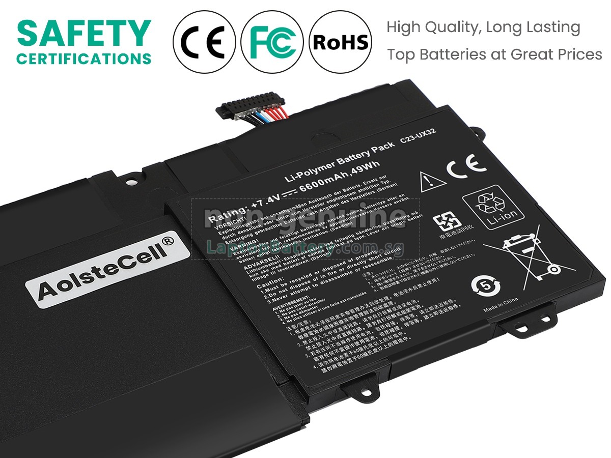 Welcome your patronage and thank you for purchasing this high quality replacement Asus C23-UX32 laptop battery at Laptopbattery.com.sg! Before placing an order, please make sure that the part number of your old Asus C23-UX32 battery is listed as below and has the same shape as our replacement C23-UX32 battery's images (please view the larger images for details).