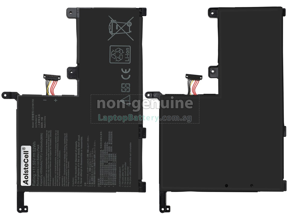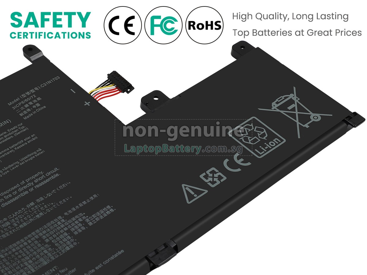 Welcome your patronage and thank you for purchasing this high quality replacement Asus C31N1703 laptop battery at Laptopbattery.com.sg! Before placing an order, please make sure that the part number of your old Asus C31N1703 battery is listed as below and has the same shape as our replacement C31N1703 battery's images (please view the larger images for details).