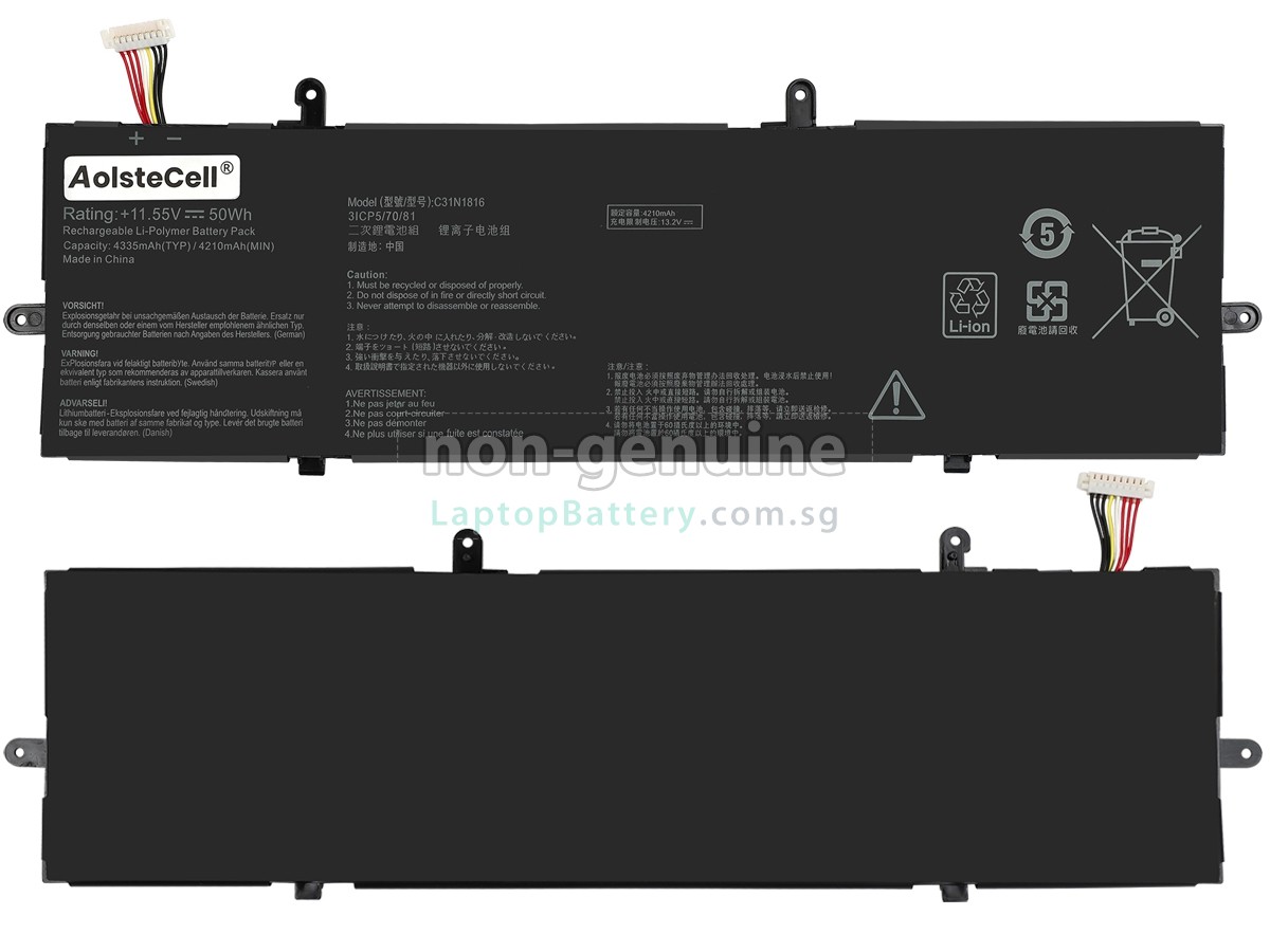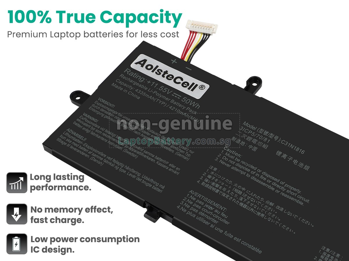 Welcome your patronage and thank you for purchasing this high quality replacement Asus C31N1816 laptop battery at Laptopbattery.com.sg! Before placing an order, please make sure that the part number of your old Asus C31N1816 battery is listed as below and has the same shape as our replacement C31N1816 battery's images (please view the larger images for details).
