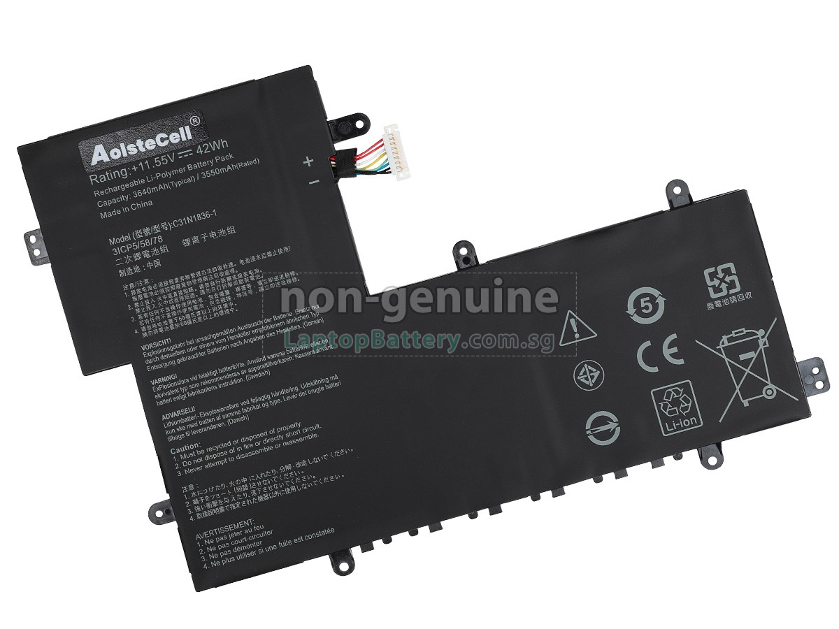 Welcome your patronage and thank you for purchasing this high quality replacement Asus C31N1836 laptop battery at Laptopbattery.com.sg! Before placing an order, please make sure that the part number of your old Asus C31N1836 battery is listed as below and has the same shape as our replacement C31N1836 battery's images (please view the larger images for details).