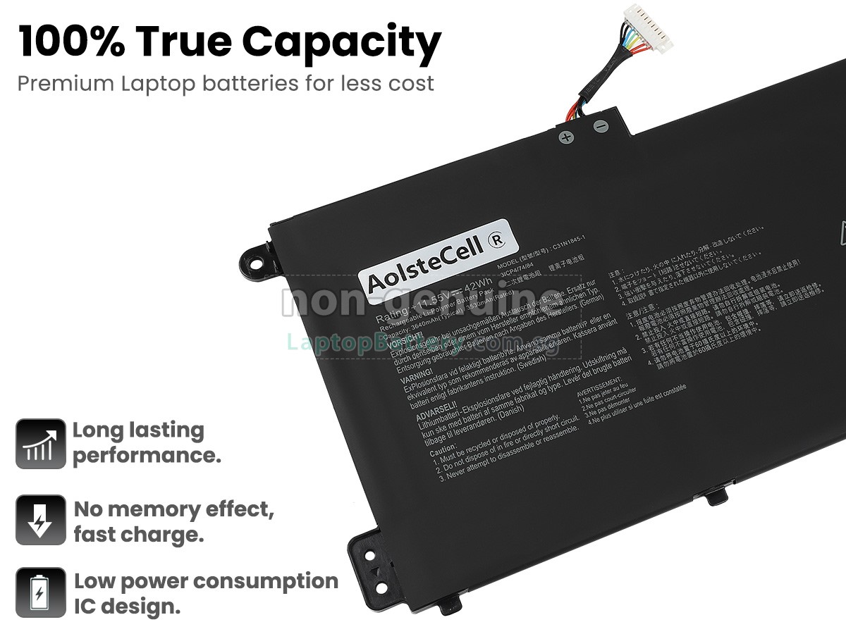 All our high quality replacement batteries for Asus C31N1845-1(3ICP4/74/84) laptop come with a 1-year warranty. Warranty is applicable if the buyer has installed the battery properly in the device and has treated the battery correctly.