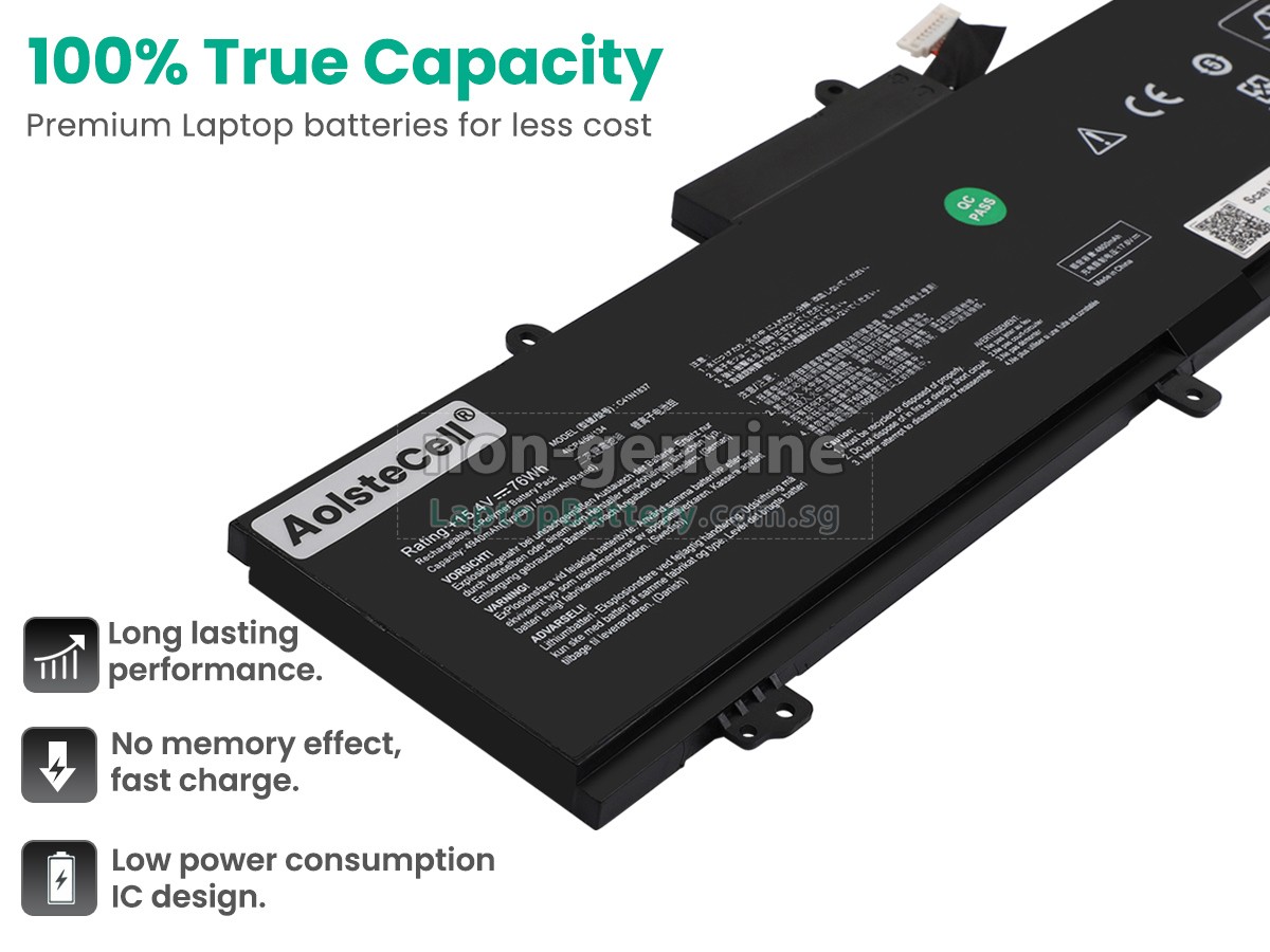 Buy with confidence! Our Website is your source for high quality Asus laptop batteries. This brand new 76Wh(4 cells) replacement Asus C41N1837 Li-Polymer battery is made with high quality cells from Samsung. Each replacement battery for Asus C41N1837 laptop has been tested on the Asus system before being dispatched and is 100% compatible with the original manufacturer's specification. When you buy our replacement Asus C41N1837 battery, you're buying trust!